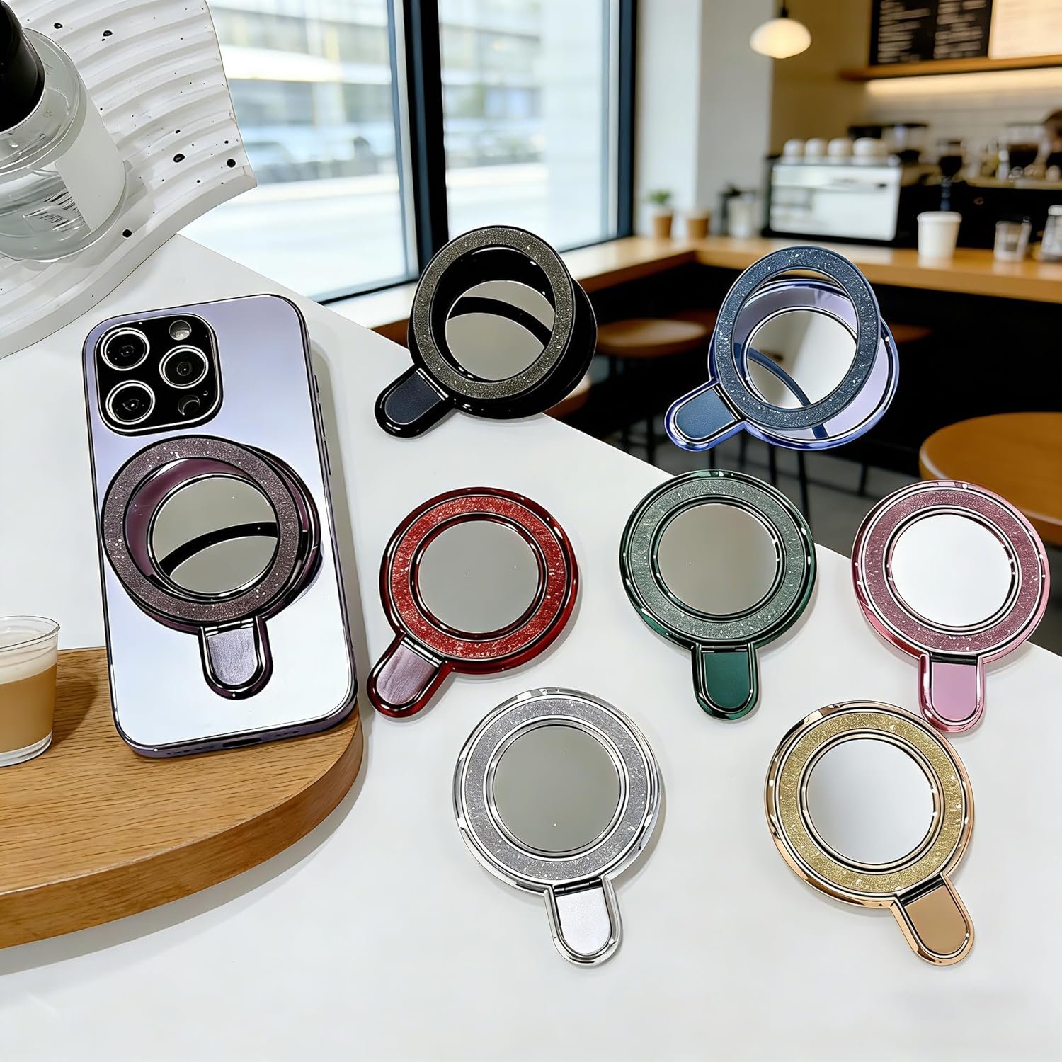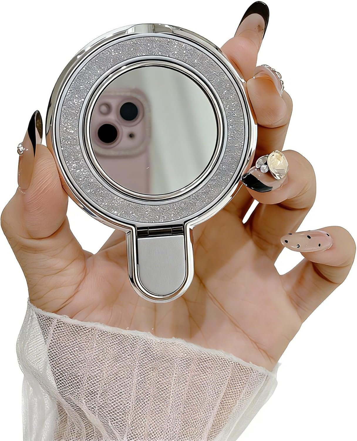 Finger Ring Stand Grip, Glitter Diamond Plating Ring Kickstand with Mirror for iPhone 17/16/15/14/13 Pro Max, Galaxy S25/ S24/S23/S22 Ultra,Ring Grip Holder for All Smartphone