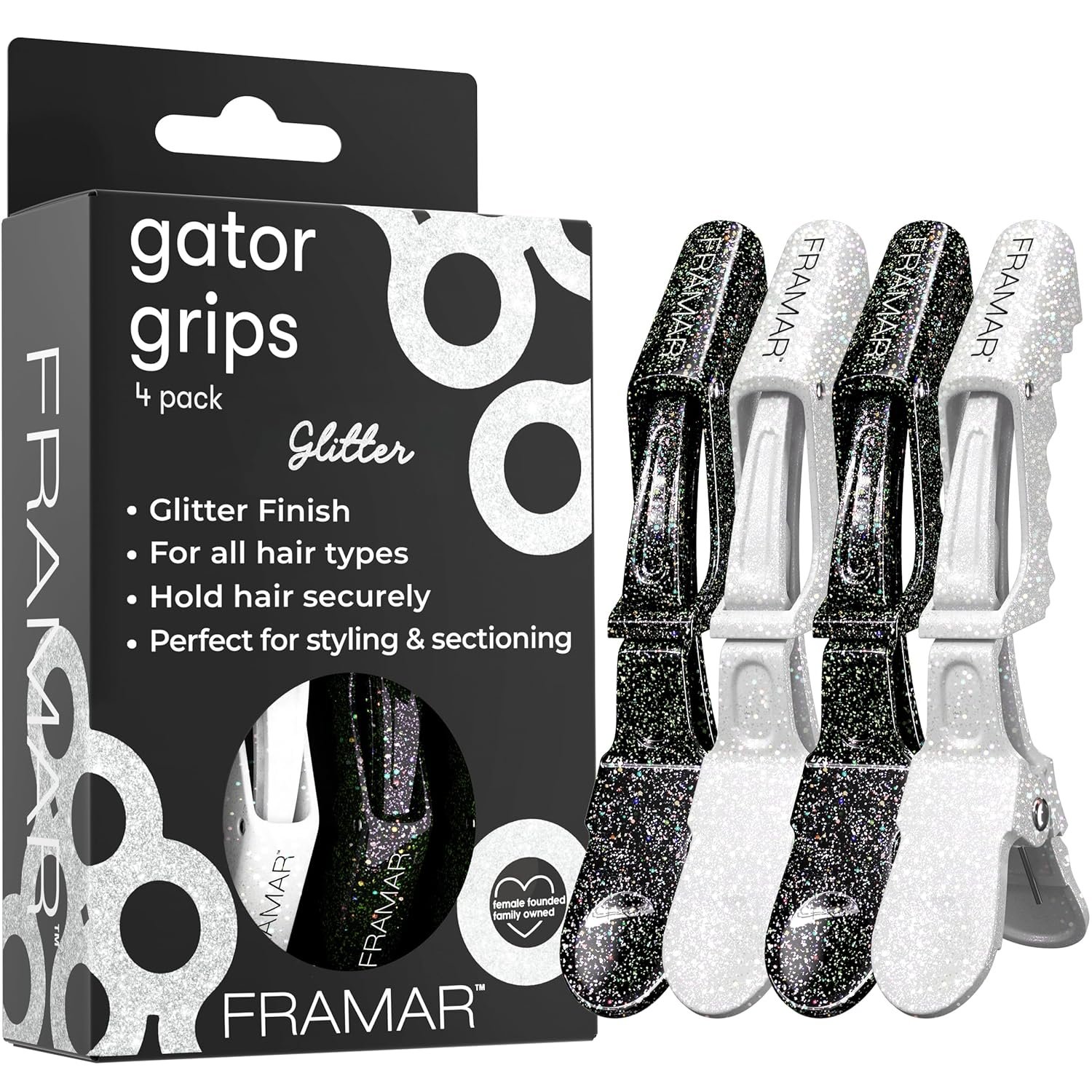 FRAMAR Glitter Hair Clip Set – Alligator Clips For Hair Styling, Hair Styling Clips Sectioning, Glitter Hair Clips For Women Styling, Salon Hair Clips – Firm Hold Without Slipping – 4 Pack