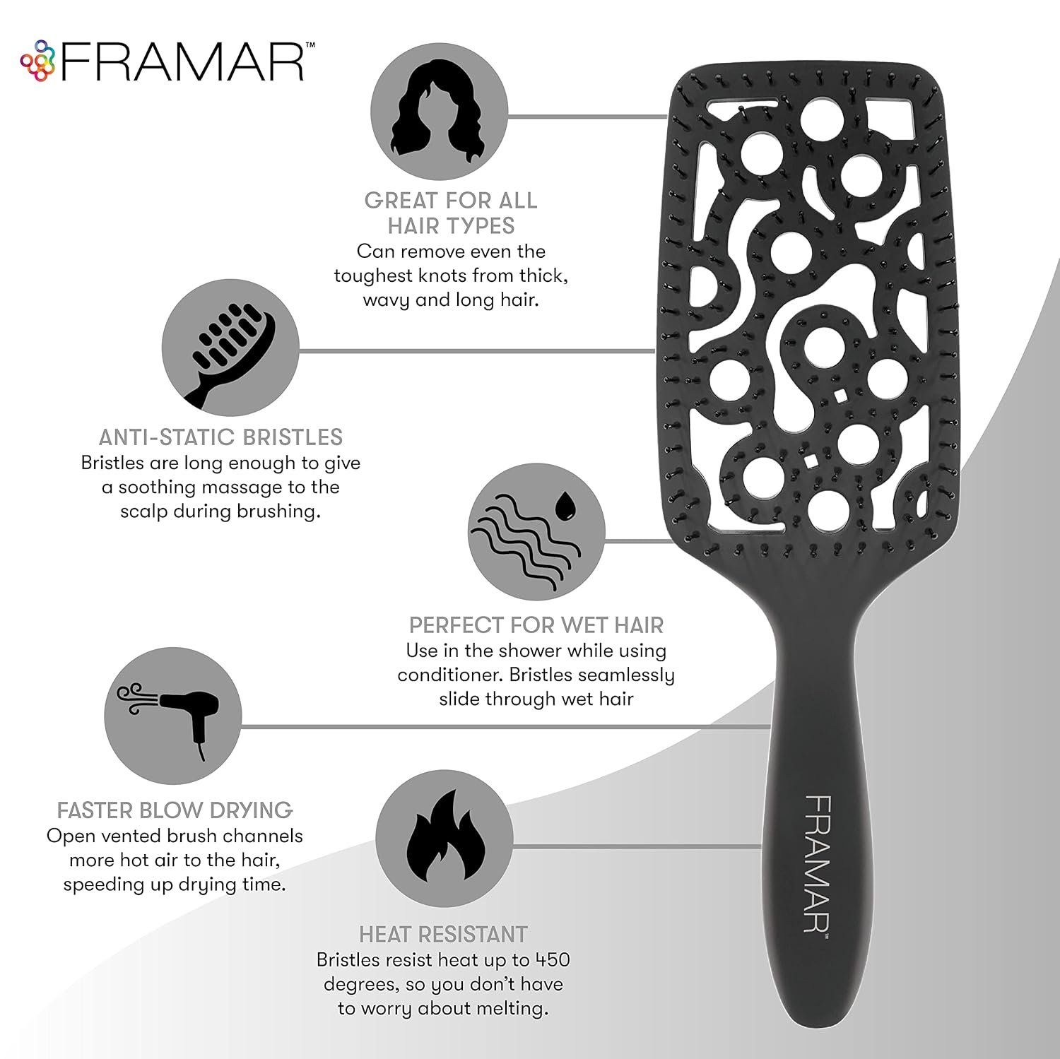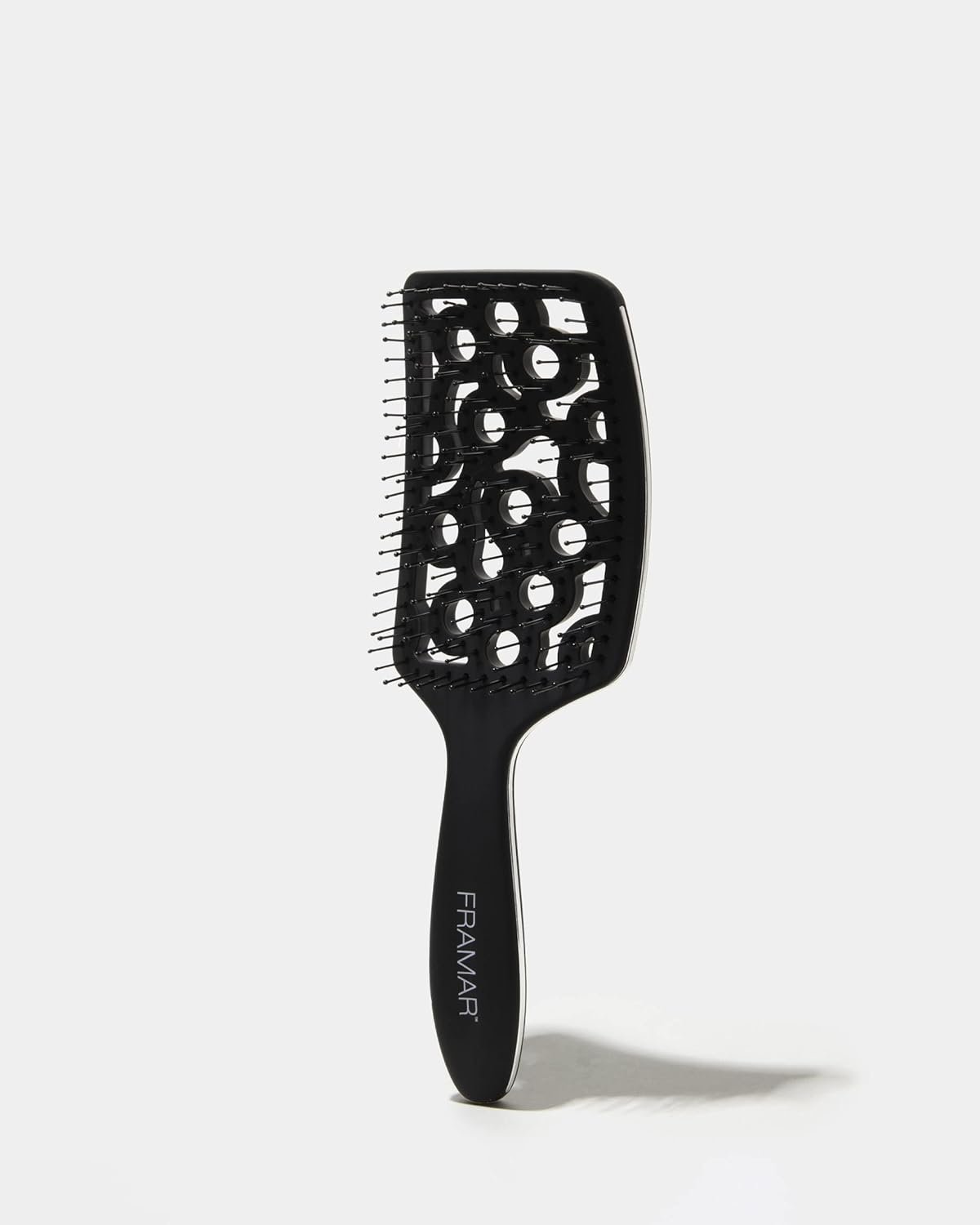 FRAMAR Professional Vented Hair Brush – Curved Hair Brush For Blow Drying, Wet Paddle Brush For Hair, Vent Brush For Blow Drying, Wet Hairbrush For Women – Heat Resistant – Black