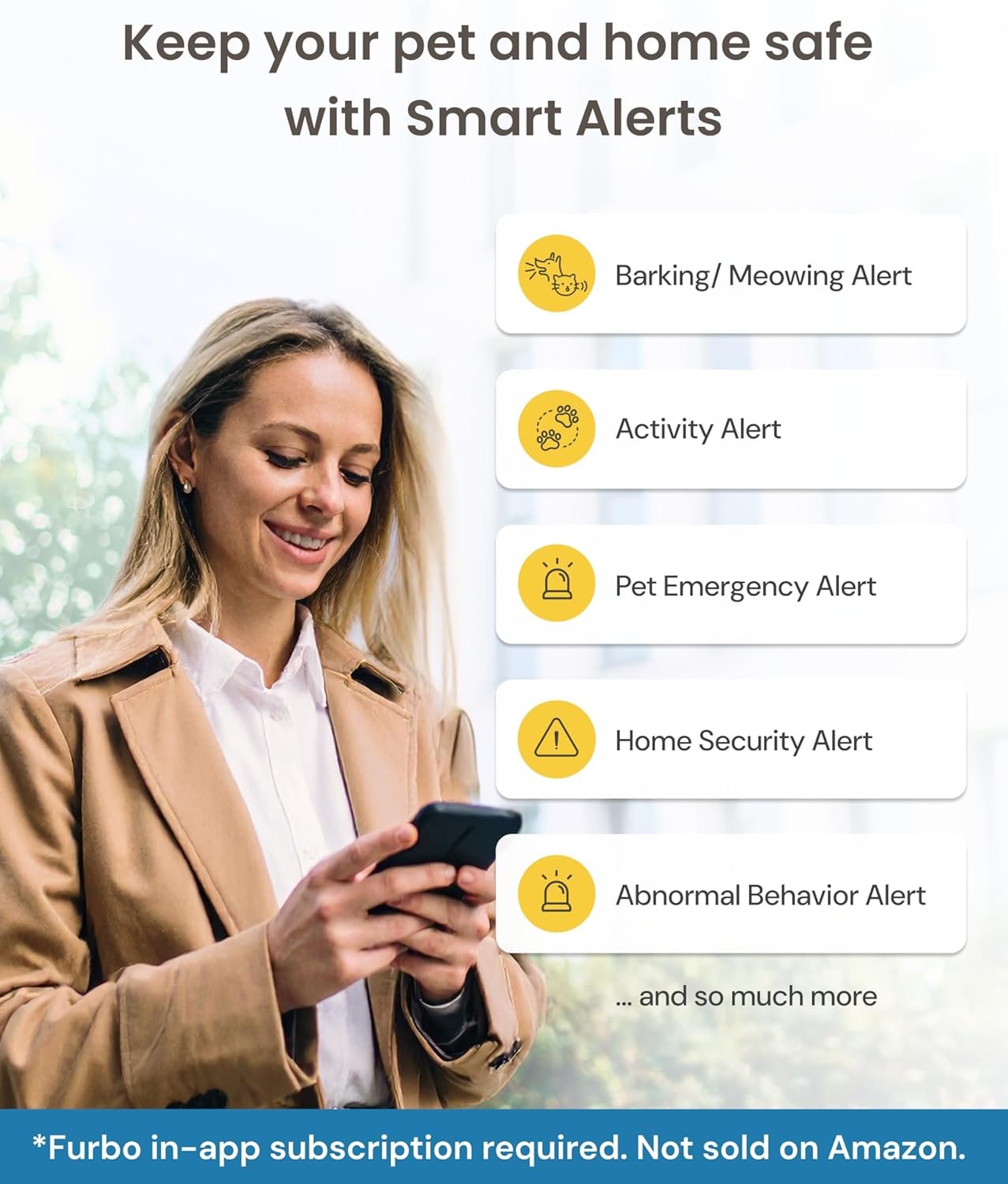 KNOW MORE WITH FURBO NANNY: Designed to watch over your pet, Furbo Nanny sends real-time alerts and smart insights, plus includes 3–7 days of video history so you can review what you missed. With continuous feature updates, it evolves to better understand your pet. (Important: This camera requires a paid subscription to Furbo Nanny.)