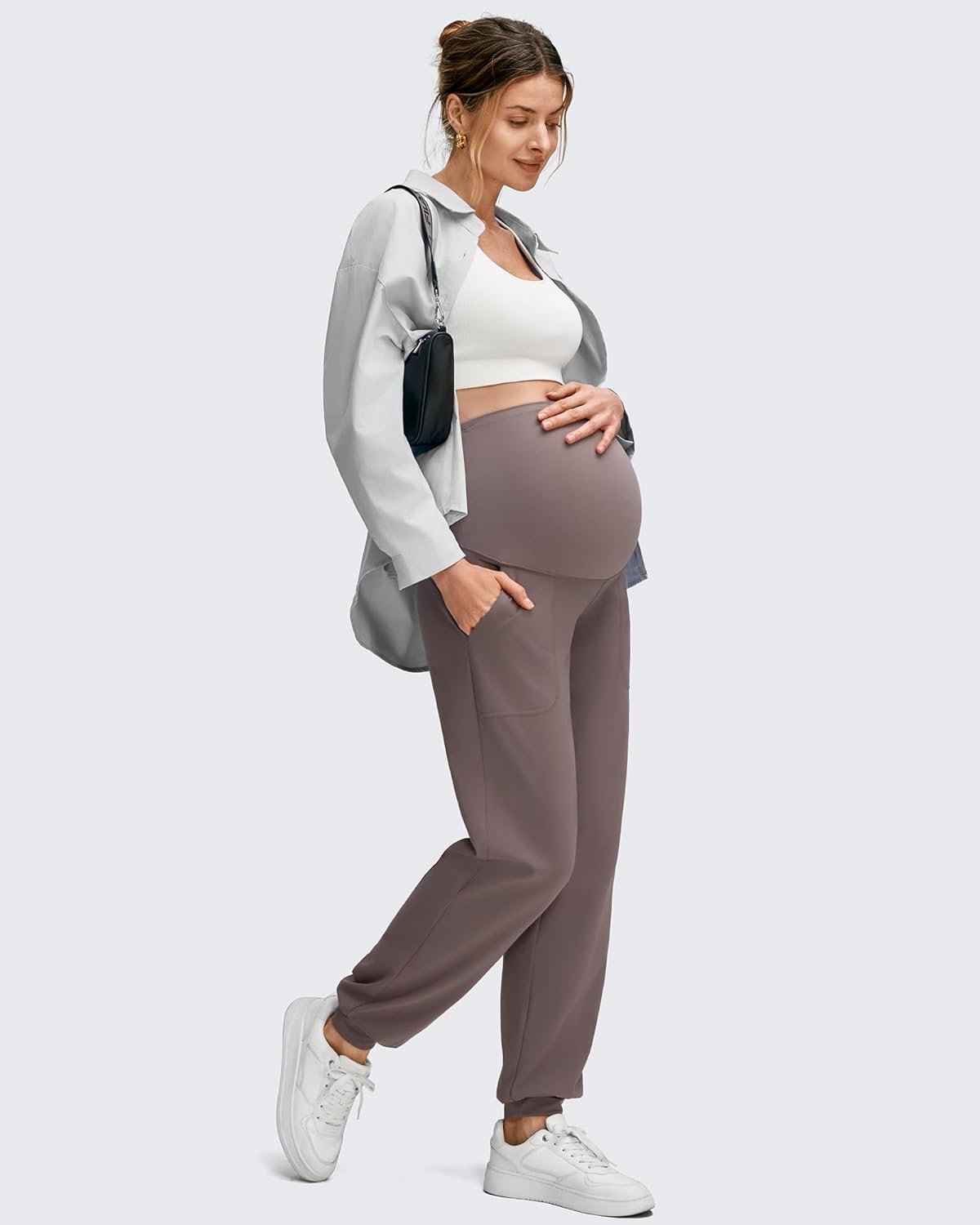 G4Free Maternity Pants Stretchy Workout Lounge Pants Over The Belly Pregnancy Joggers with Pockets