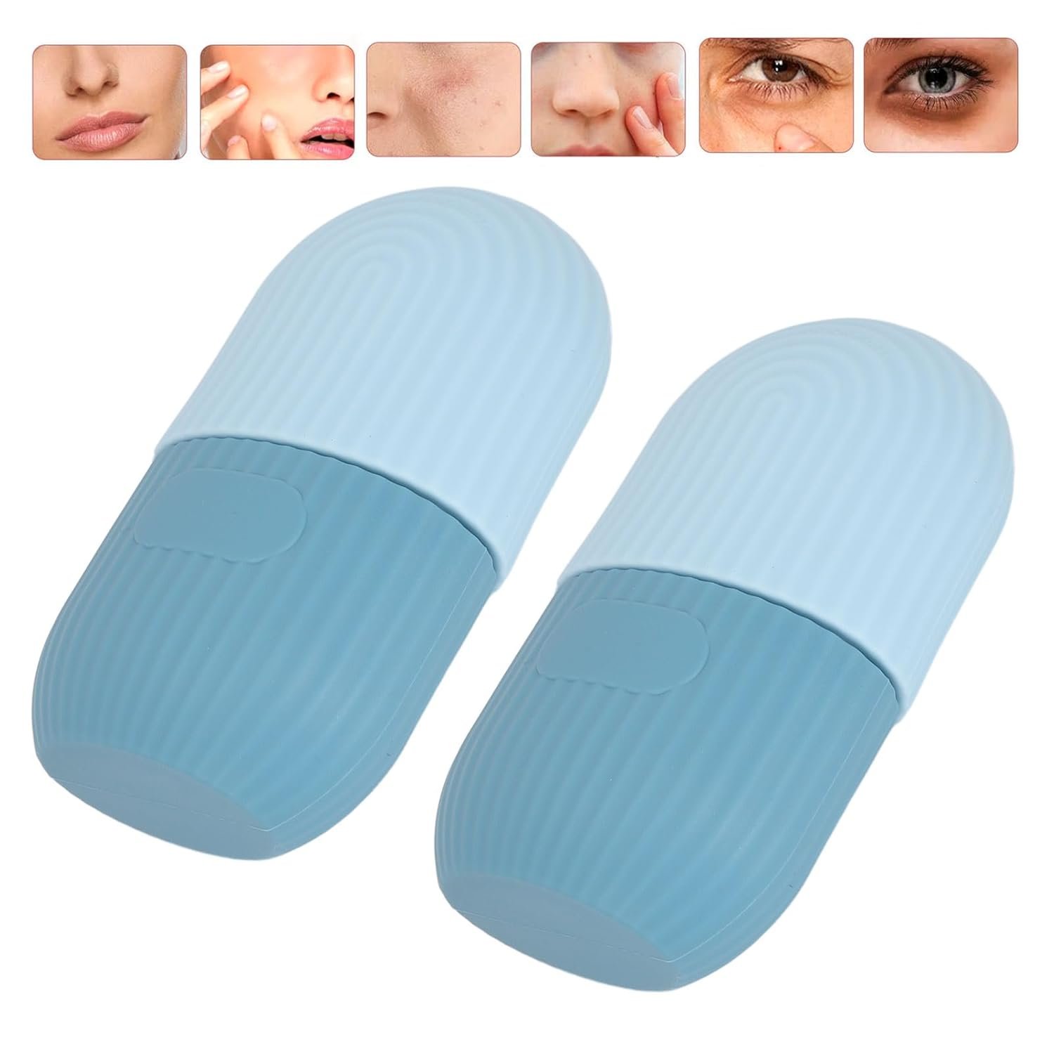generic 2pcs Ice Face Roller Reducing Puffiness Silicone Facial Eye Cold Roller Massage Tool for Home (Light Blue)