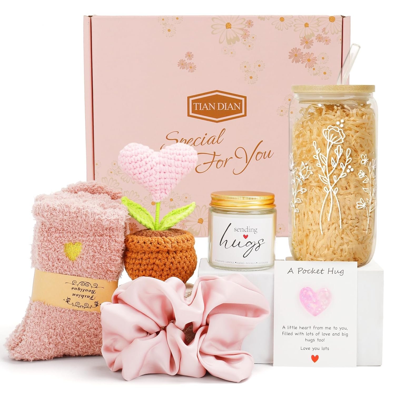 Lift her spirits with TIAN DIAN Design’s thoughtfully curated care package, designed to bring comfort, love, and warmth. Whether you’re sending a hug from afar, wishing a speedy recovery, or cheering up a best friend, this beautifully arranged gift box is perfect for any occasion.