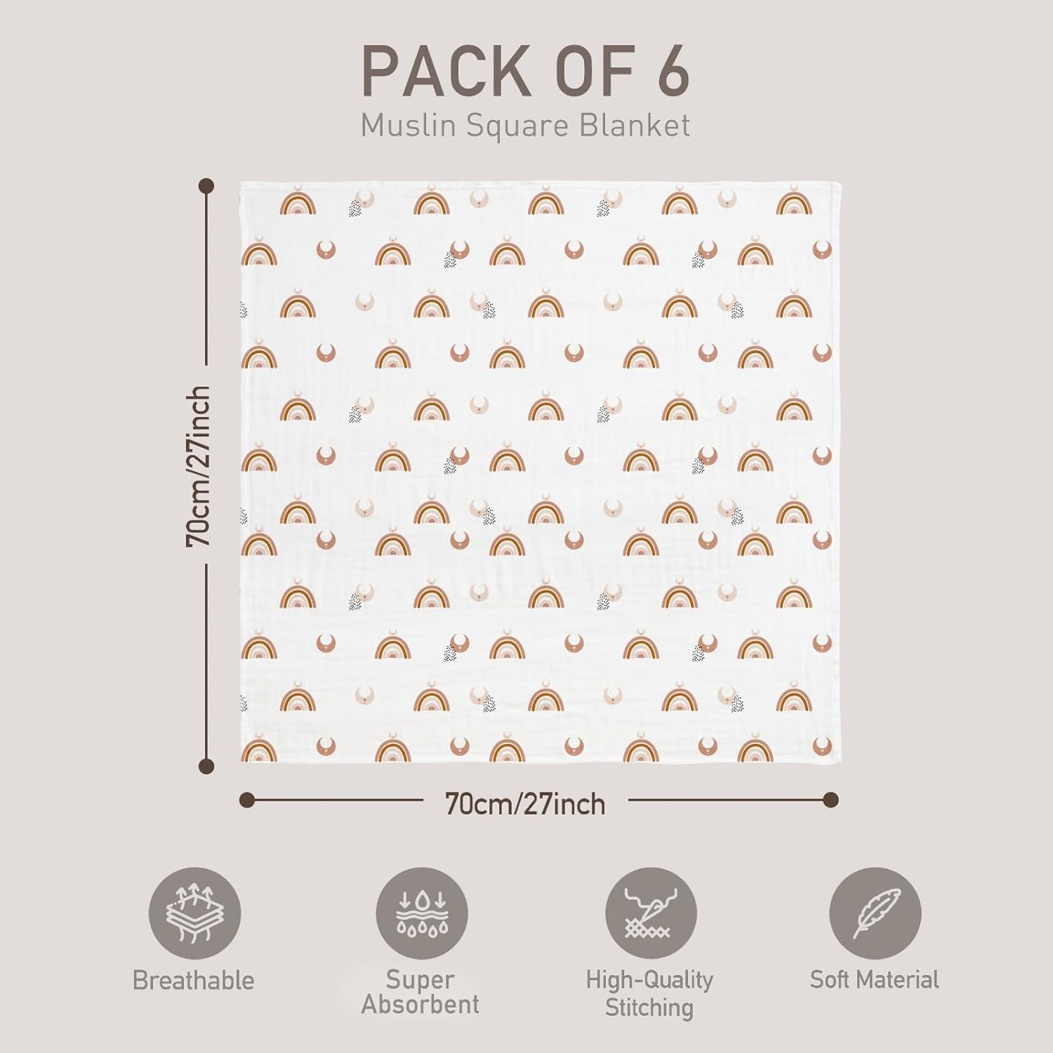 GLLQUEN BABY Receiving Blanket Boy Cotton Muslin Swaddle Blankets Girl Newborn Squares Breathable & Soft Thin Baby Blankets Cloths Double Absorbent Infant Swaddling Wrap – 6 Pack (Sun)