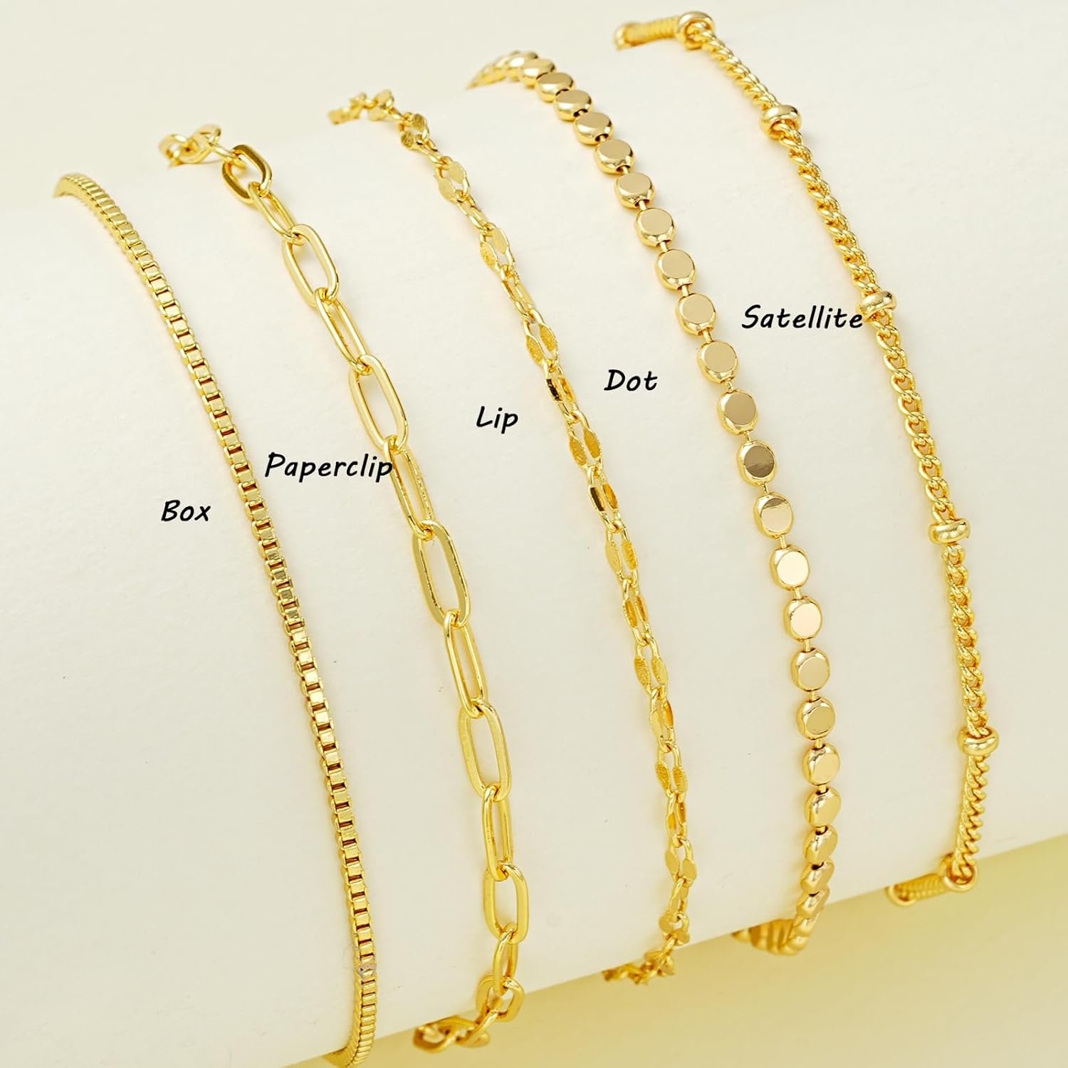 Gold Bracelets for Women, Trendy Adjustable 14K Gold Plated Stackable Link Bracelet, Dainty Thin Paperclip Chain Bracelets Stack Set