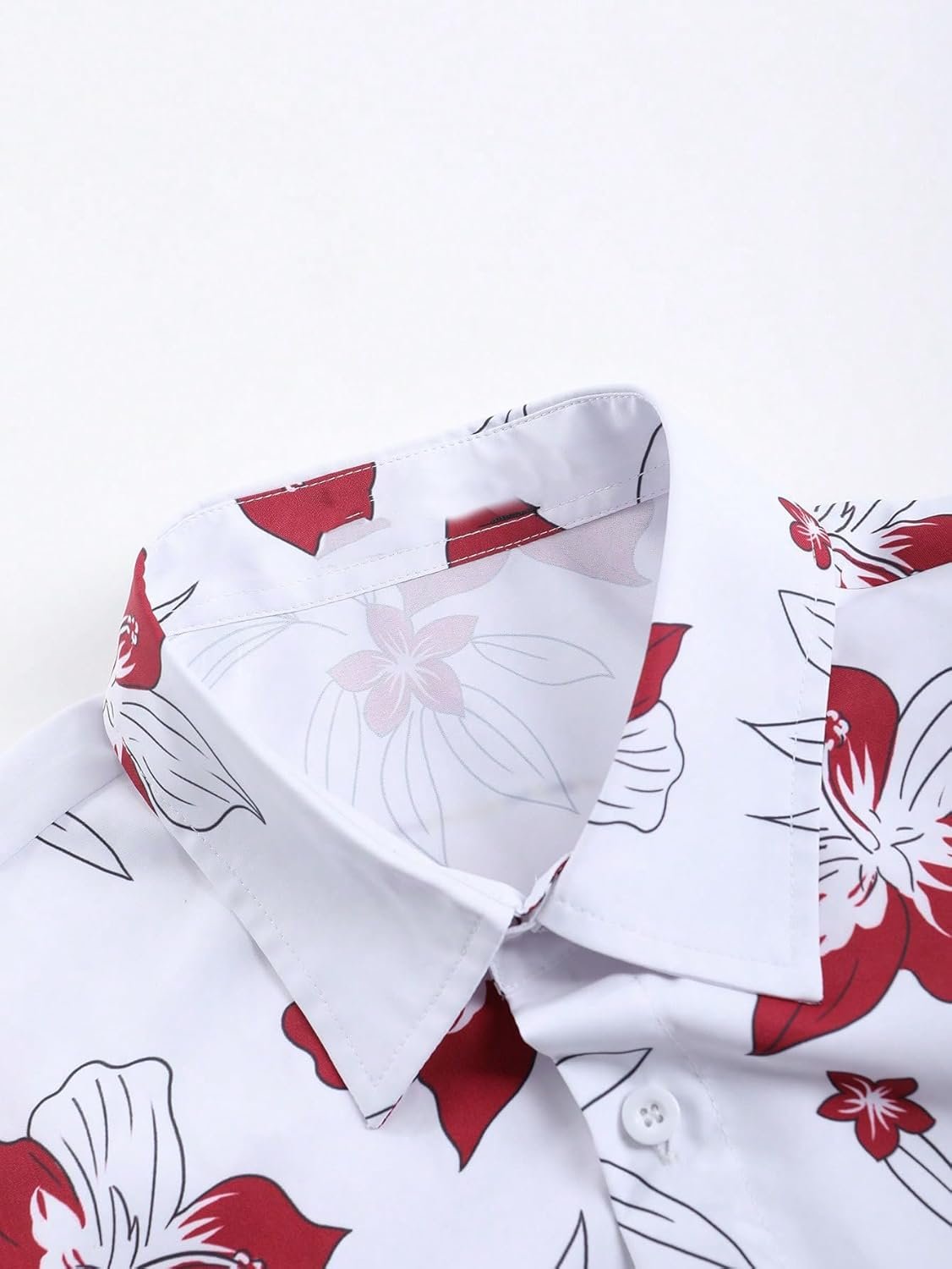 GORGLITTER Men’s Vacation Beach Cruise Summer Outfits 2 Piece Shorts Set Hawaiian Button Down Shirt and Shorts