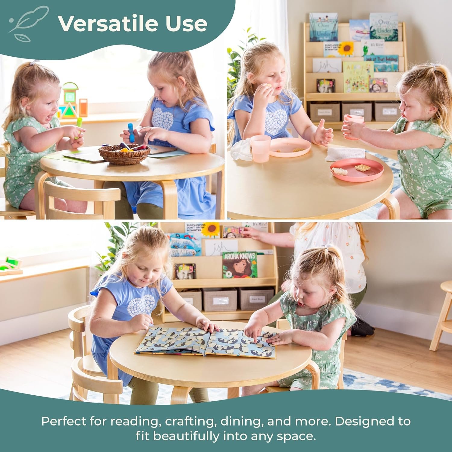 AVAILABLE IN WHITE AND NATURAL FINISHES – With clean, modern lines and your choice of natural or white finishes, this set blends beautifully into a variety of spaces—from playrooms and bedrooms to classrooms, libraries, or shared family areas.