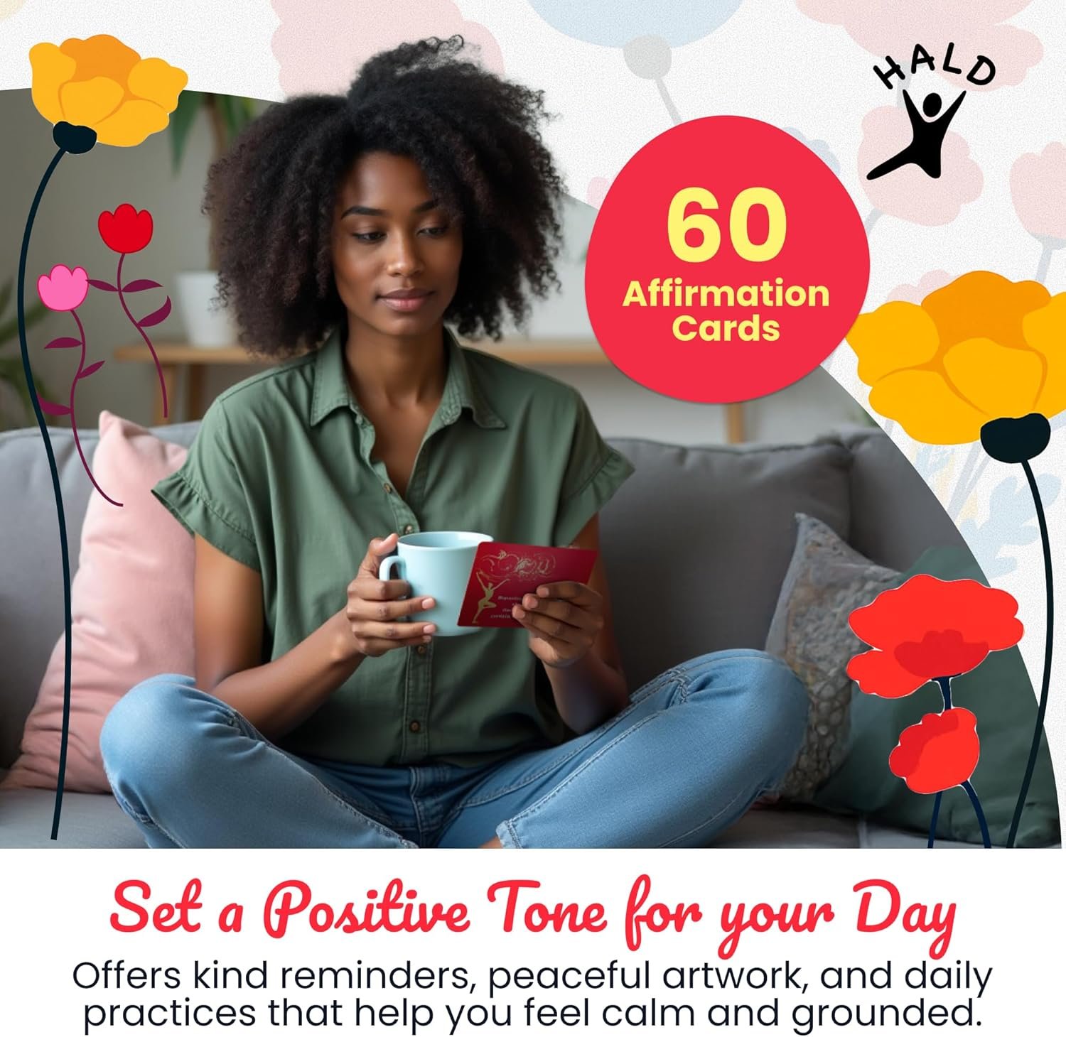 Start Your Day with Intention: Set a positive tone for your day with HALD Positive Affirmation Cards; 60 affirmation cards for everyone with uplifting words and mindful exercises; Encourages mindful focus and a positive mindset