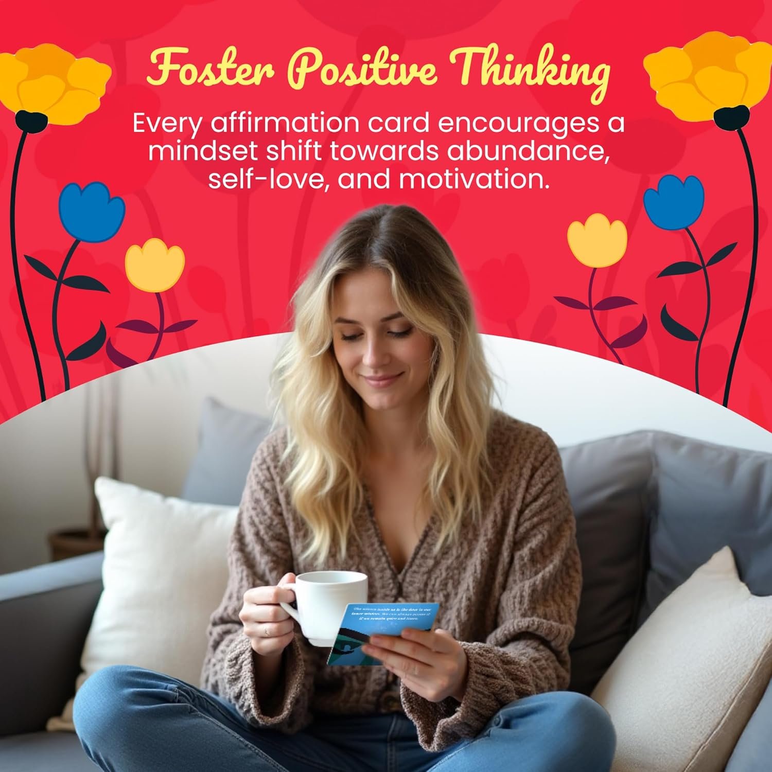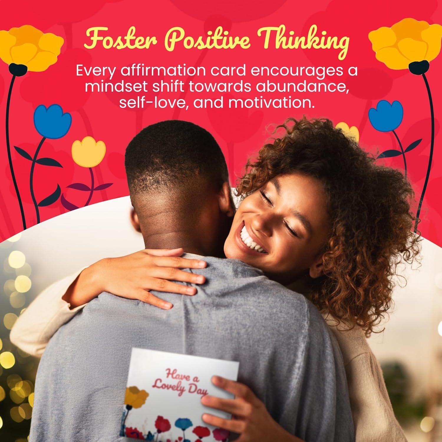 Foster Positive Thinking: Loved by mature and young people alike; Motivational cards feature affirmations to help raise vibrations and ease stress; Every affirmation card encourages a mindset shift towards abundance, self-love, and motivation