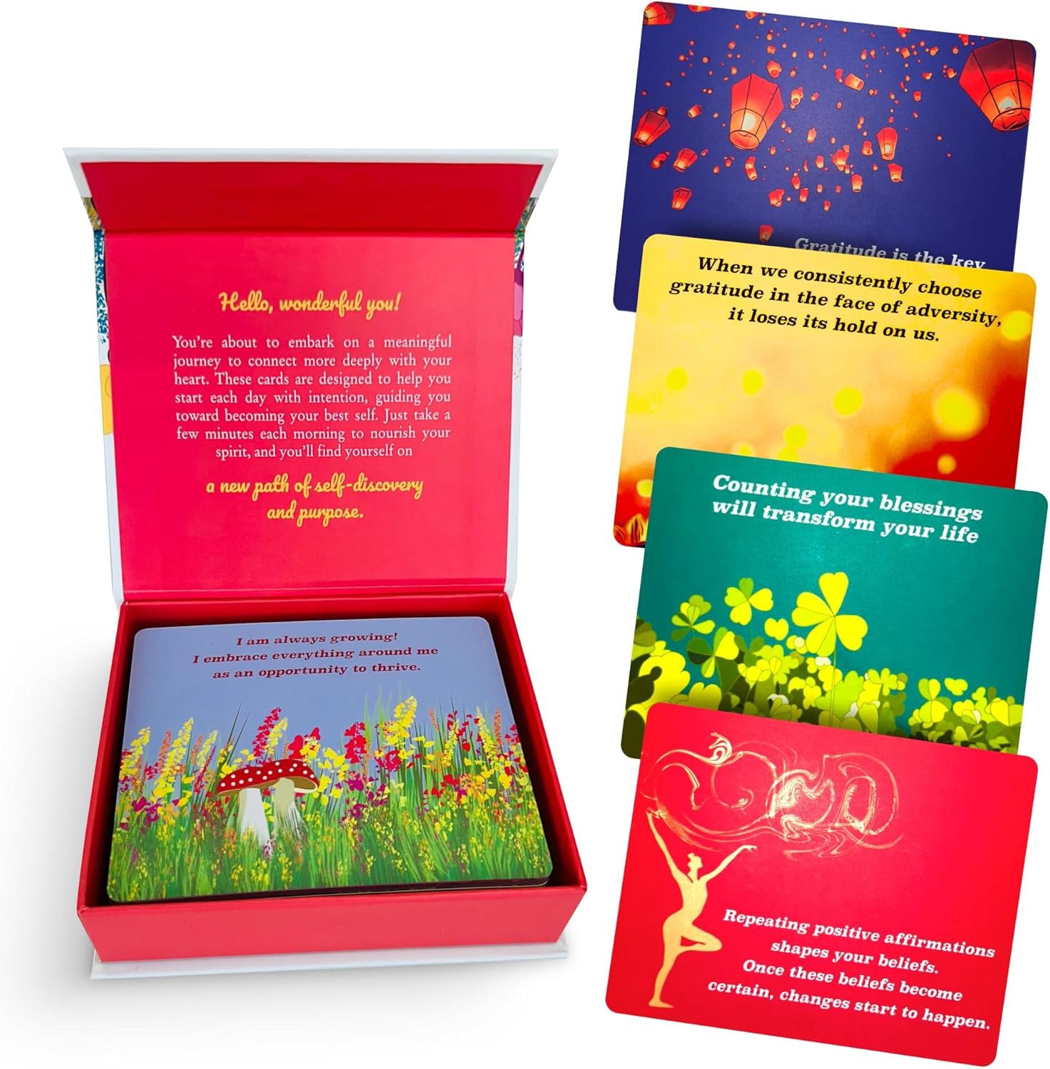 A Quick Way to Promote Mindfulness: Create a moment of calm and positivity in 5 minutes with our daily affirmation cards; Besides positive affirmations, these encouragement gifts include exercises to help you stay mindful and inspired