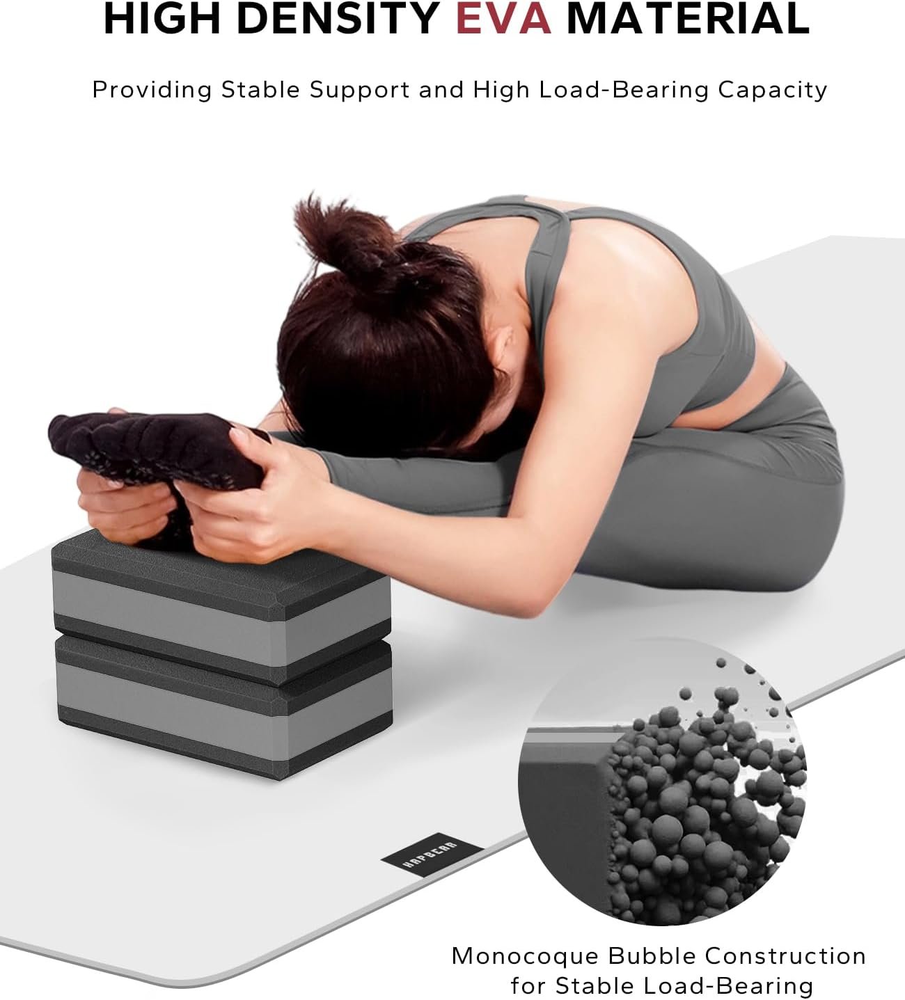 HAPBEAR Yoga Blocks 2 Pack – 9x6x3in High-Density EVA Foam with Non-Slip Textured Surface, Supportive for Deep Stretching & Lightweight – Ideal for Yoga, Pilates, Stretching Exercises