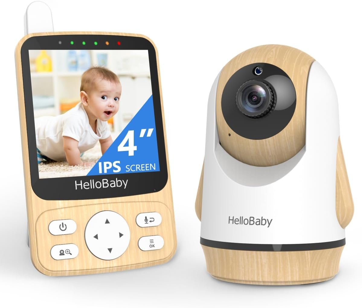 HelloBaby 4″ IPS Video Baby Monitor with Camera – No WiFi, 26Hrs Battery, Night Vision, 2-Way Audio, Remote PTZ & Temp Sensor, 1000ft Range for Cribs/Nursery/Pets/Travel