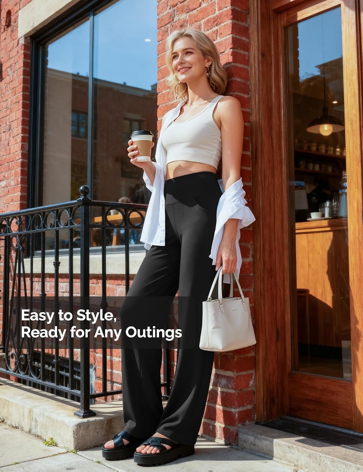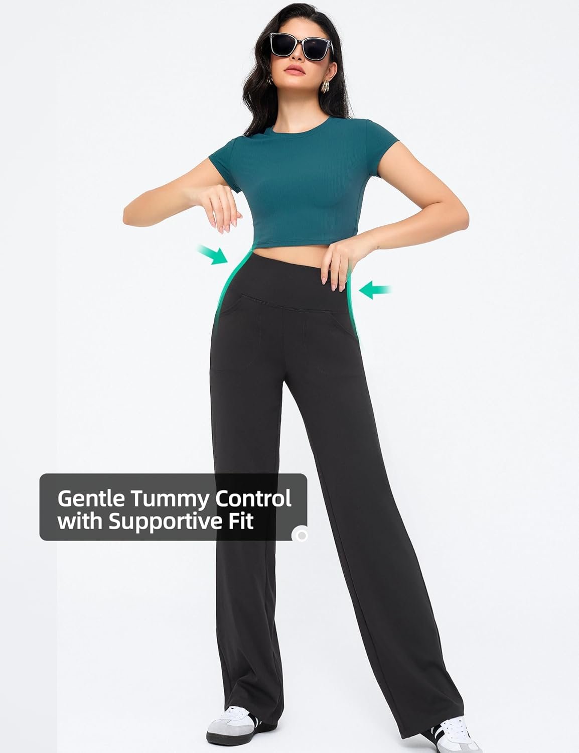 High Waisted Wide Leg Yoga Pants with Pockets, Straight Leg Lounge Pants for Women, Stretch Sweatpants Trousers