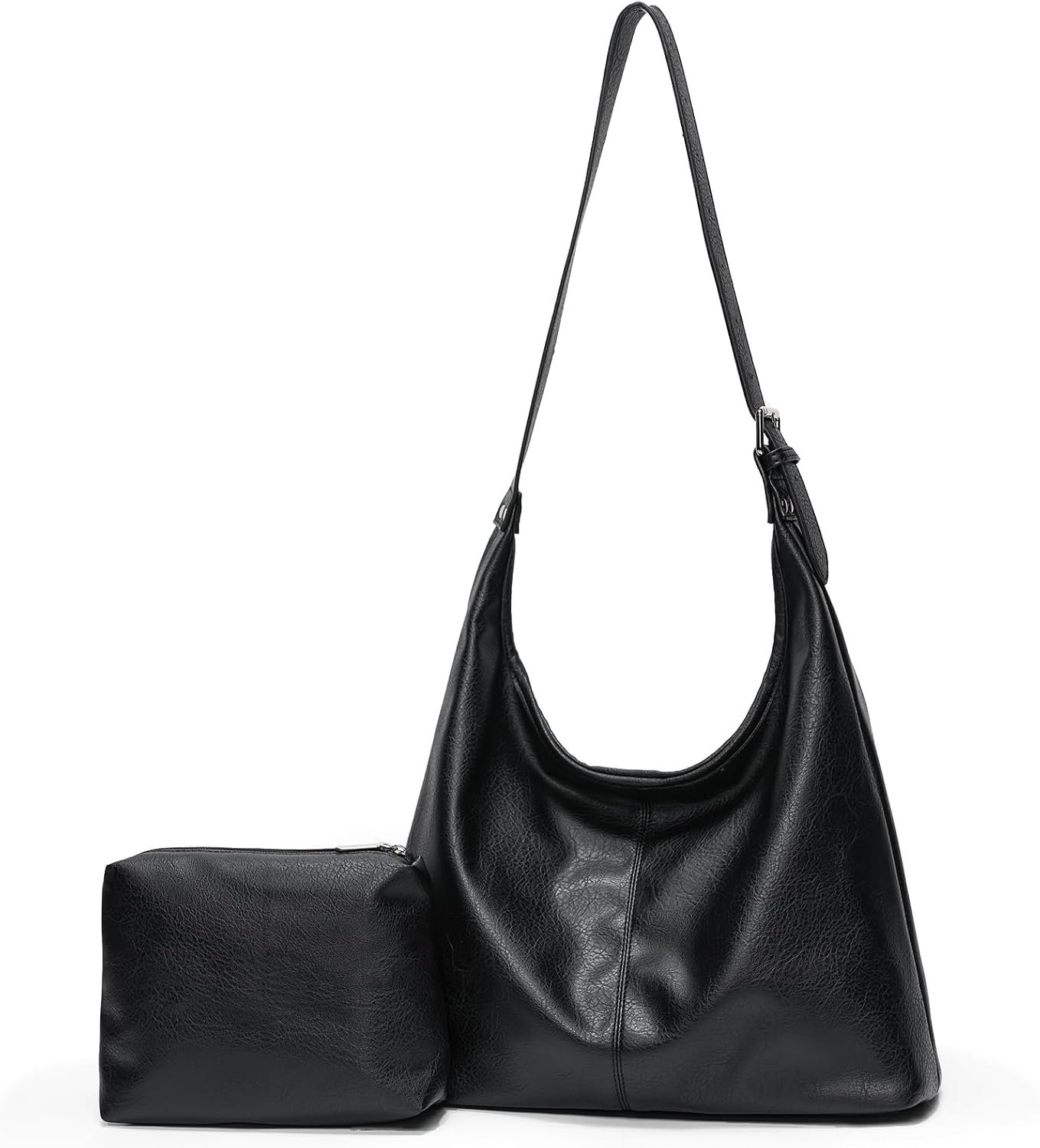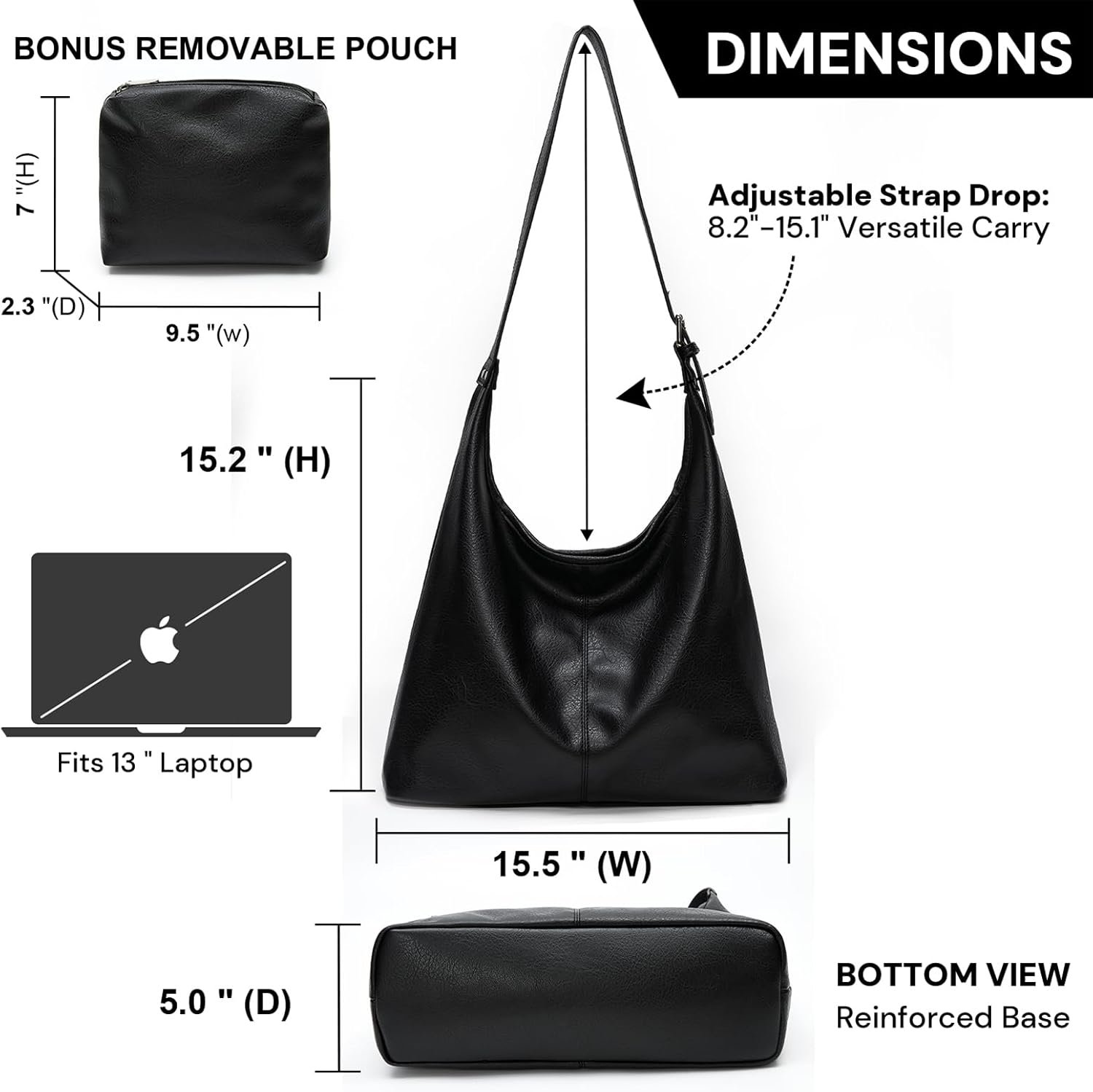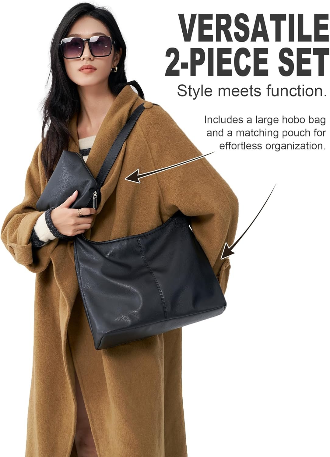 Hobo Bag for Women, Soft Vegan Leather Slouchy Shoulder Tote Purse with Matching Pouch, Adjustable Strap & Magnetic Closure