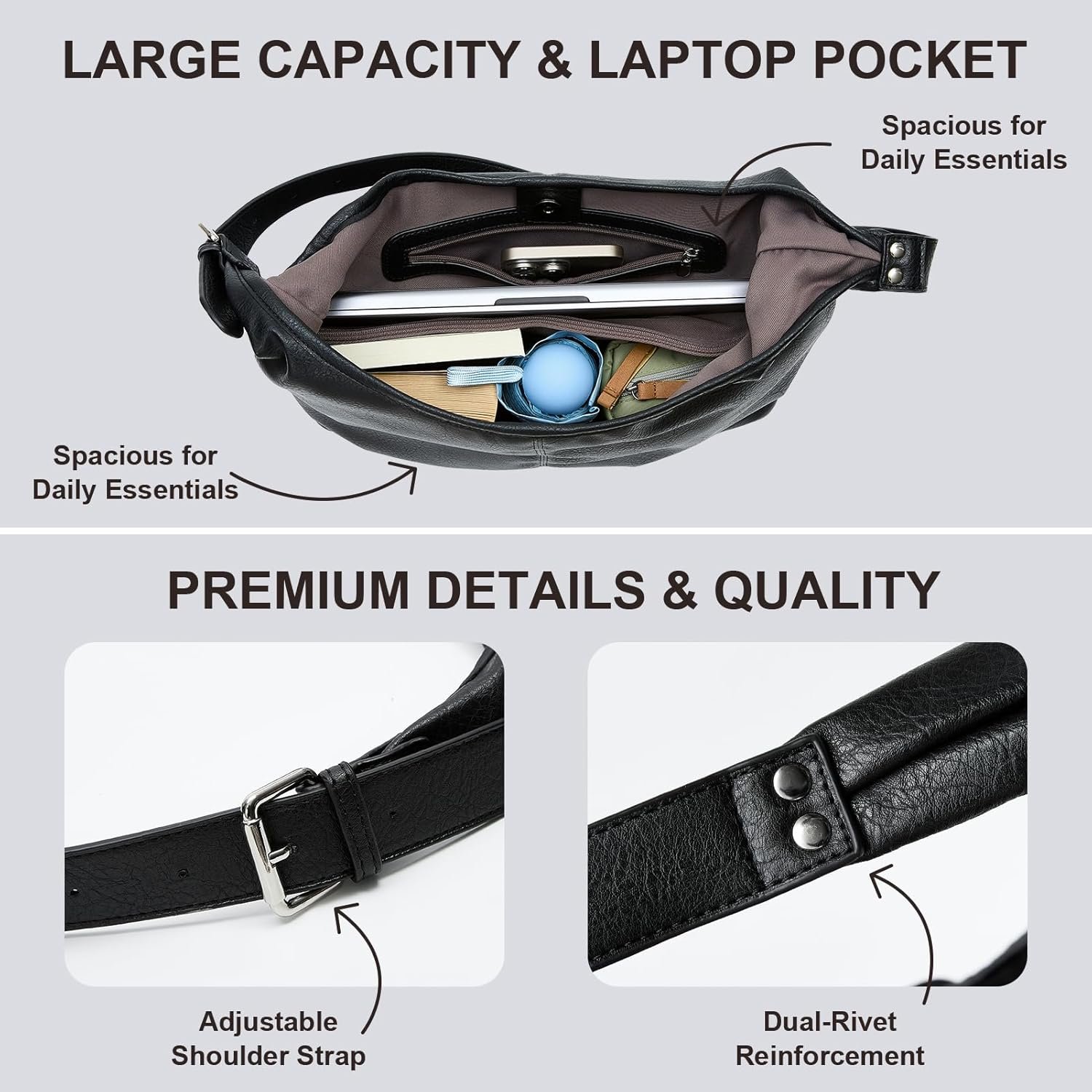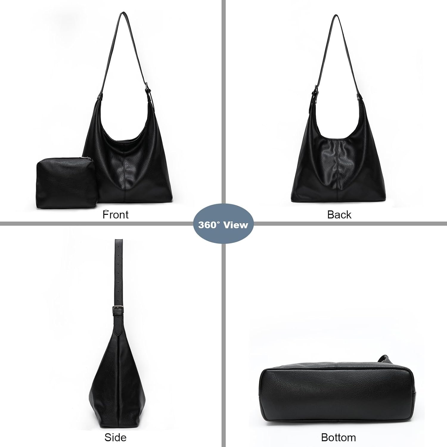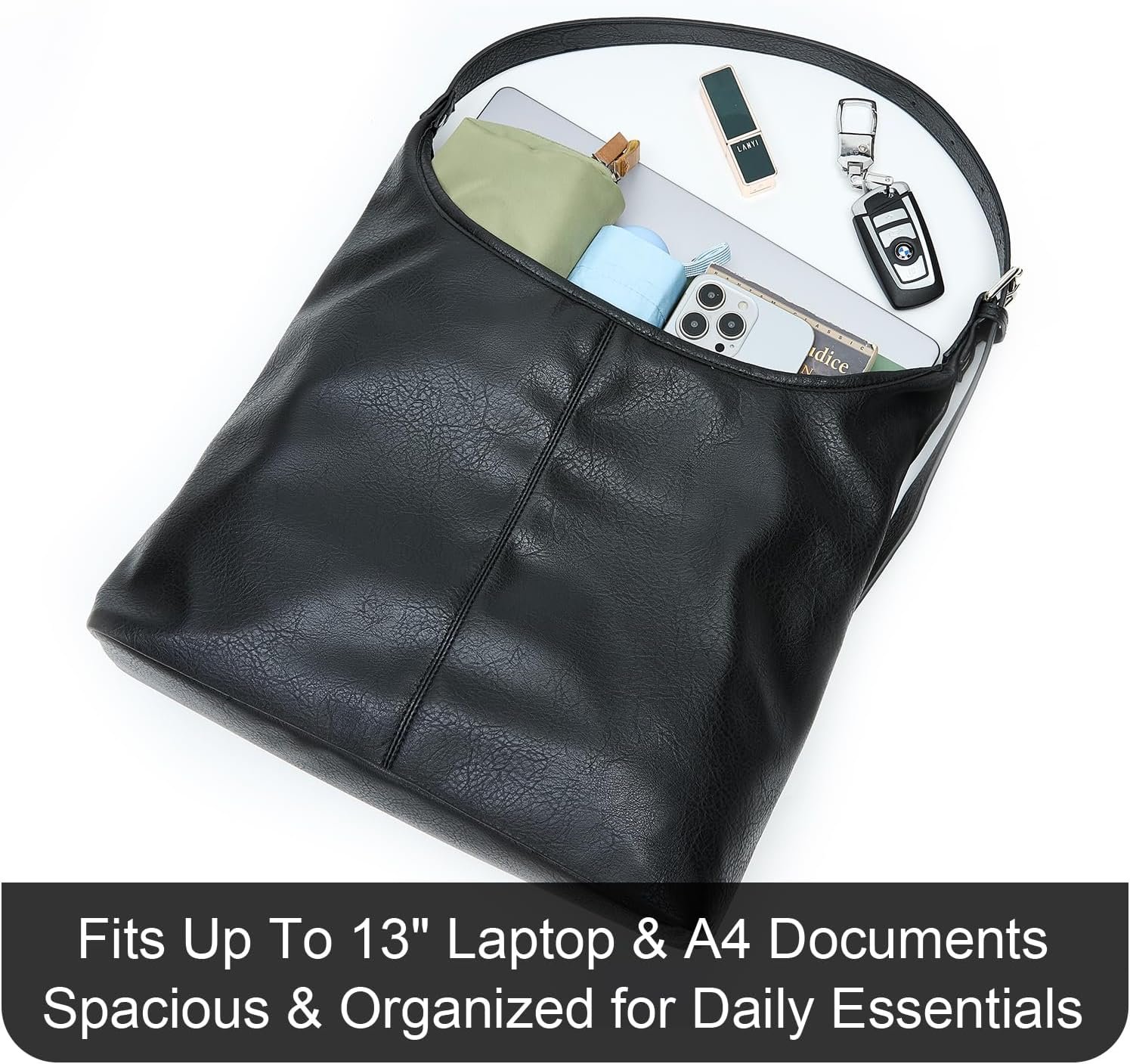 Hobo Bag for Women, Soft Vegan Leather Slouchy Shoulder Tote Purse with Matching Pouch, Adjustable Strap & Magnetic Closure