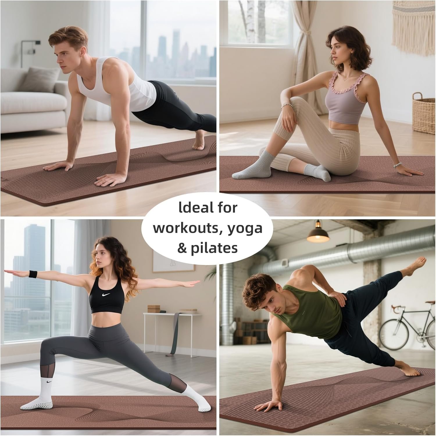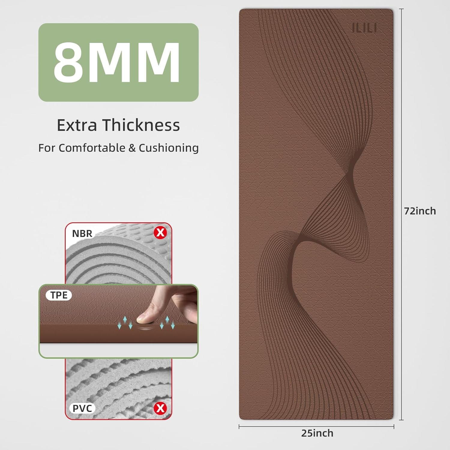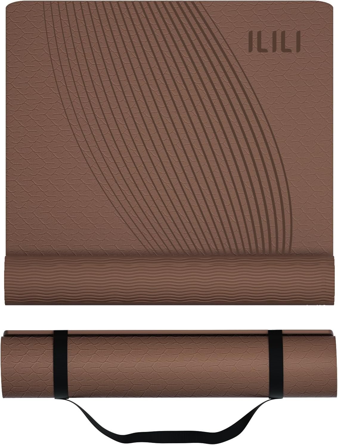 ILILI Yoga Mat, 72×25×0.3 Inch, TPE Exercise Mat, Tear-Resistant, Fitness Yoga Mat with Carrying Strap, Ideal for Yoga, Pilates, Home Workouts, Stretching & All Fitness Routines
