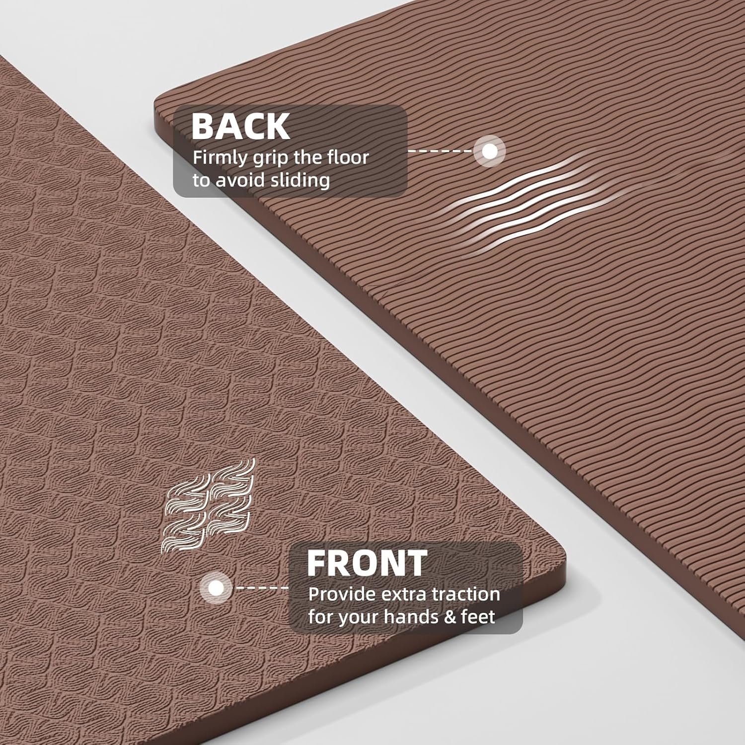 Anti-slip texture:The yoga mat features a non-slip surface that keeps it firmly in place during stretches, poses, preventing slips and ensuring your safety.