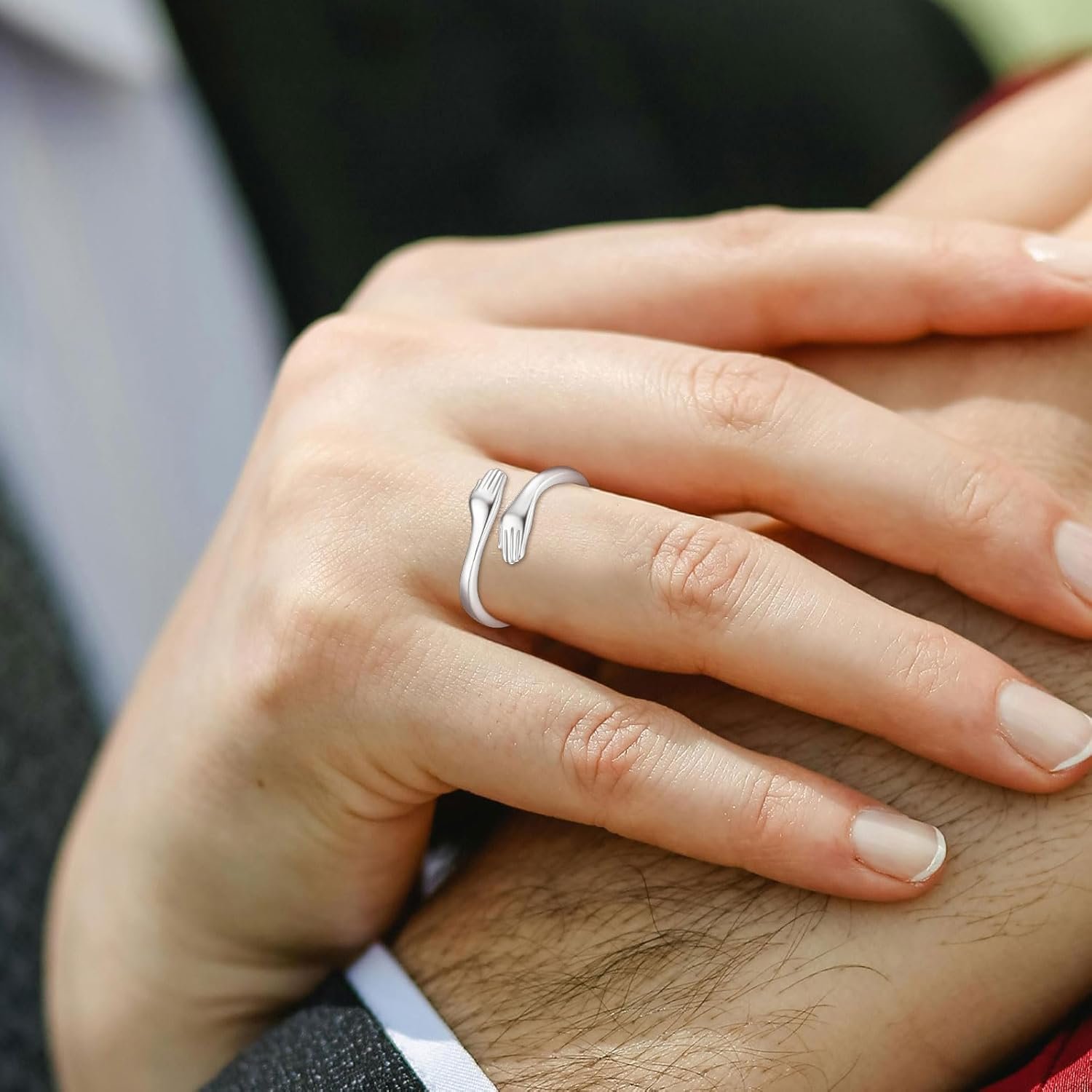 INFUSEU 925 Sterling Silver Cute Hug Rings for Women Teen Girls, You Are Loved Gifts for Daughter Girlfriend Sister Friend