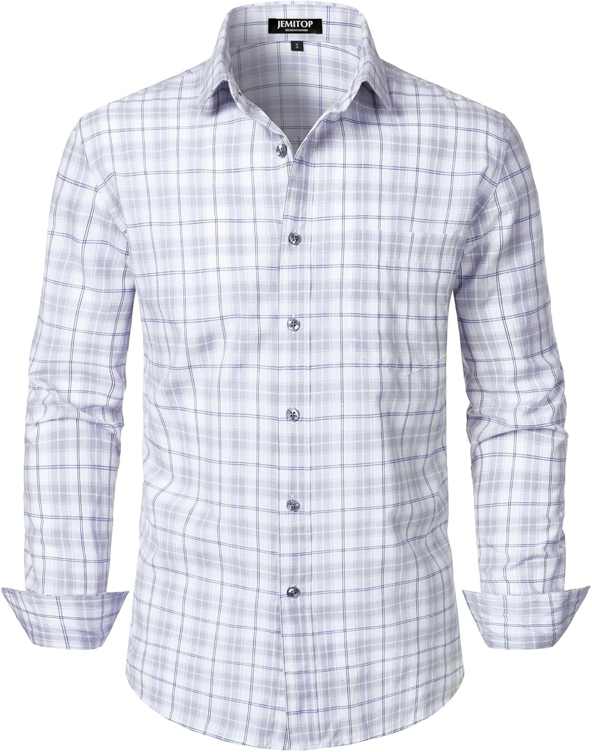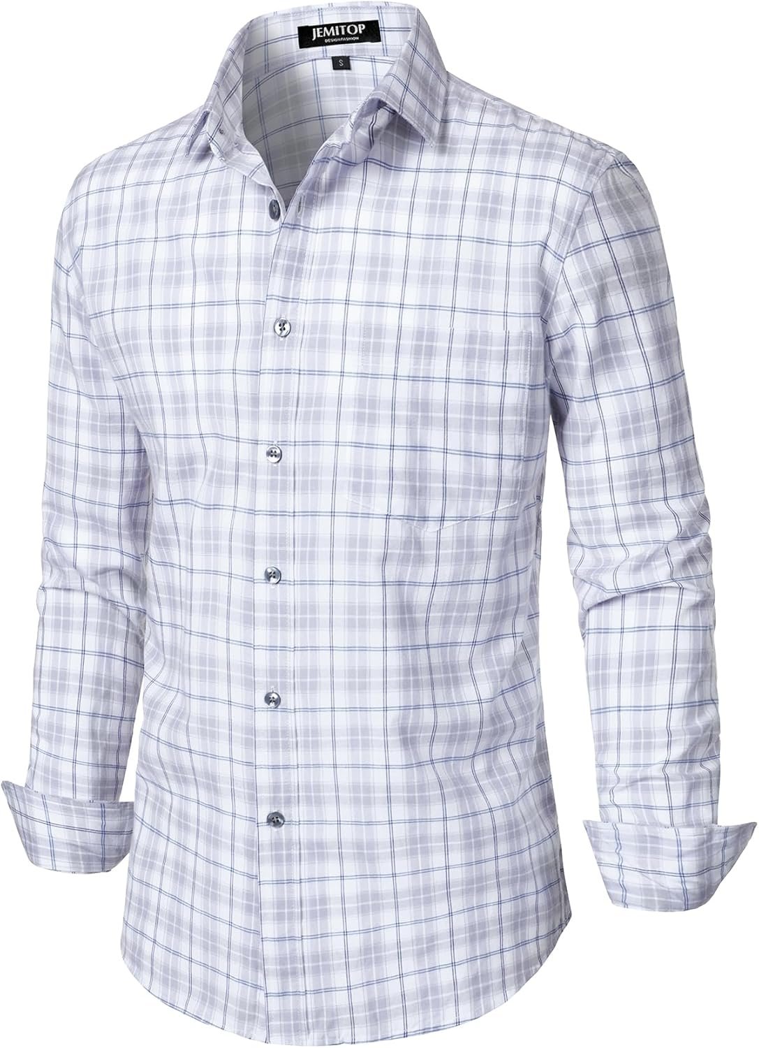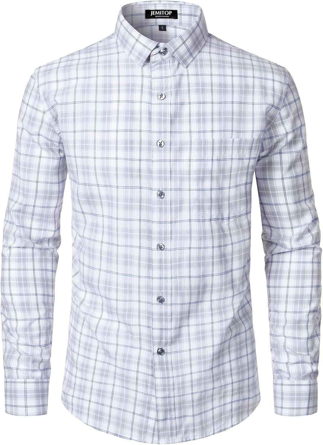 JEMITOP Men’s Transitional Weather Slim Fit Long Sleeve Button Down Shirt Business Casual Dress Shirts with Pocket