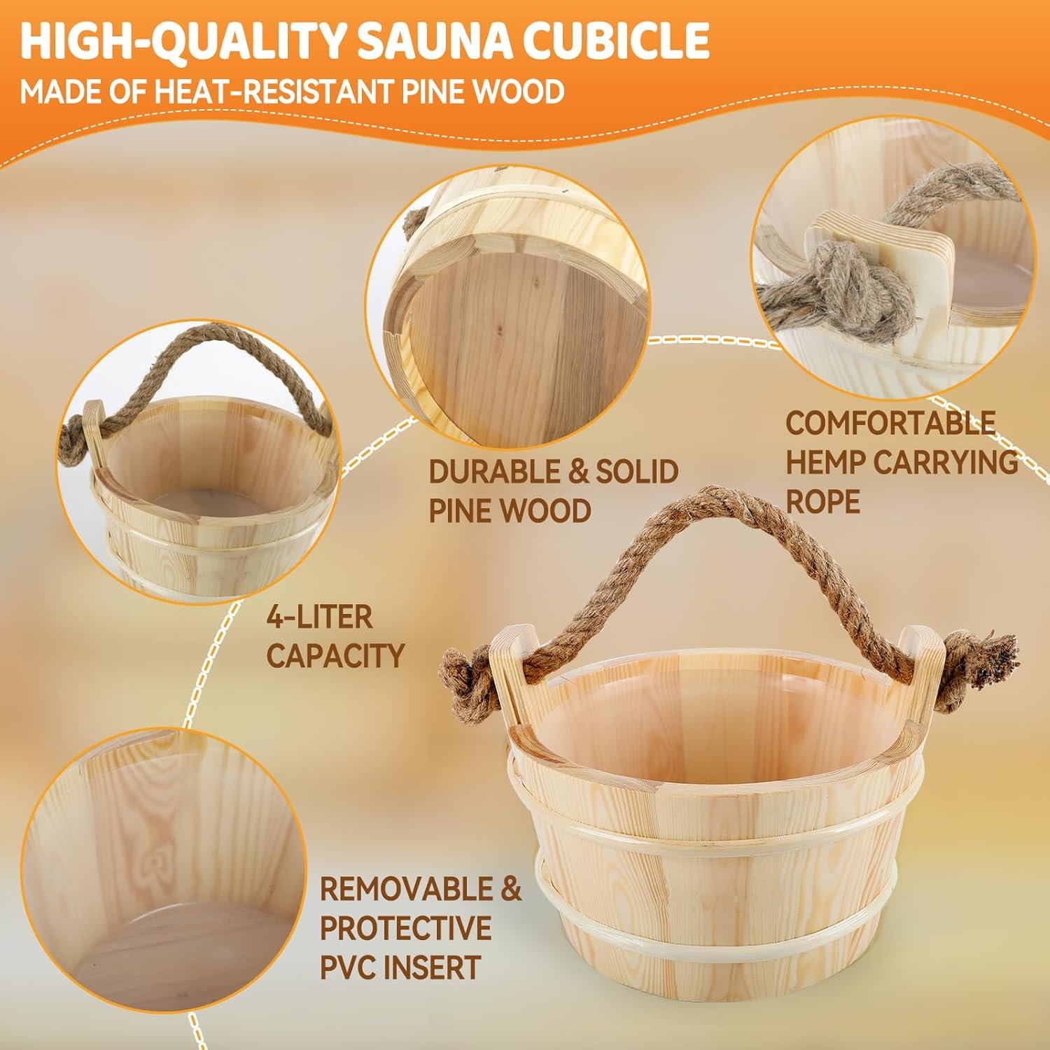 Authentic Handcrafted Sauna Experience at Home:Transform your bathroom or backyard into a Nordic-style wellness retreat with this complete 6-piece sauna kit. Every item—from the hand-carved pine bucket to the smooth wooden ladle—is crafted with care to replicate traditional sauna rituals. The 1-gallon bucket holds enough water for multiple steam bursts