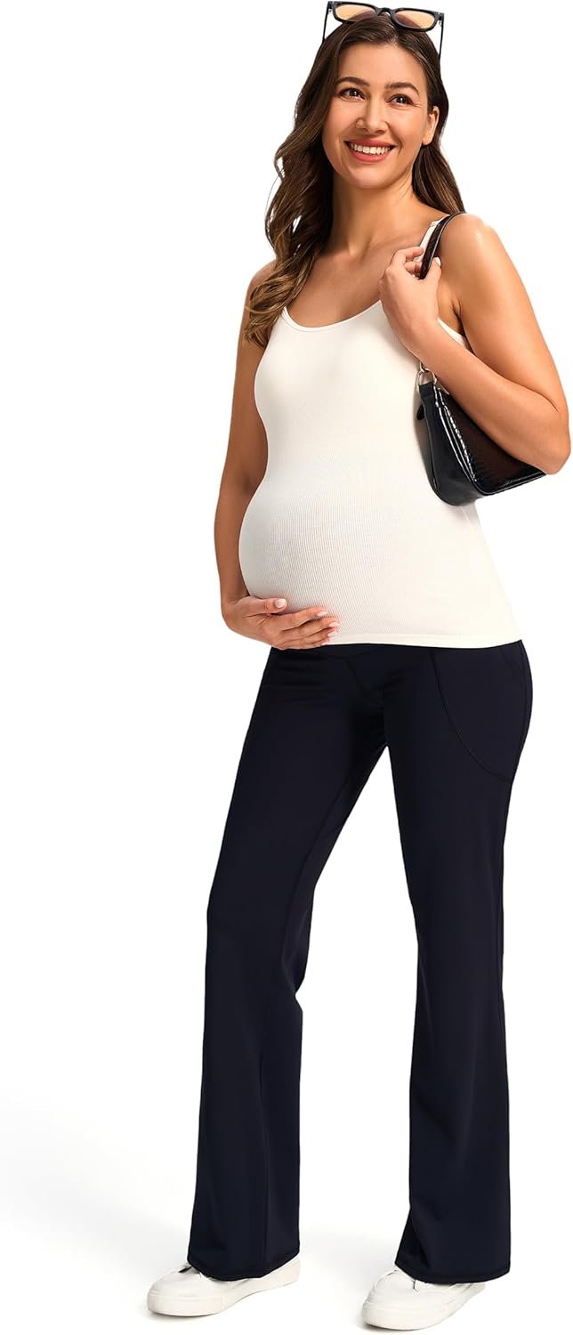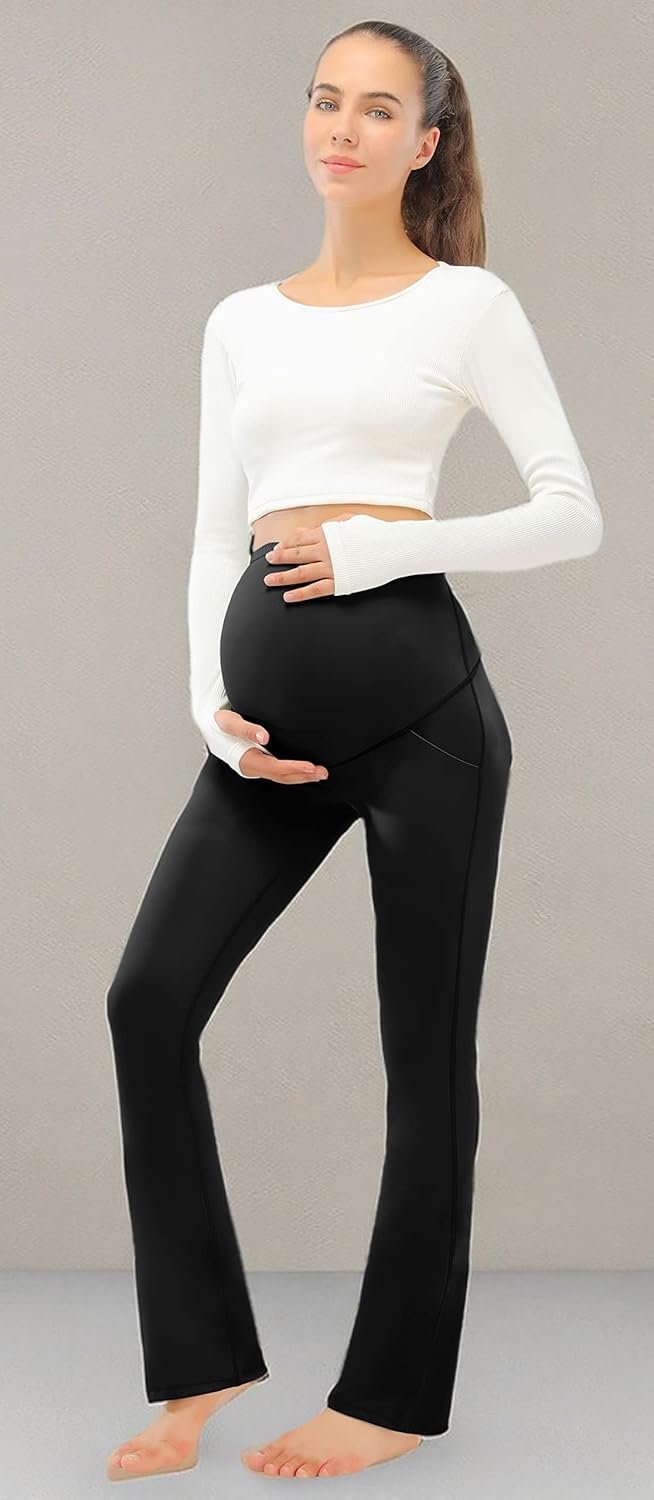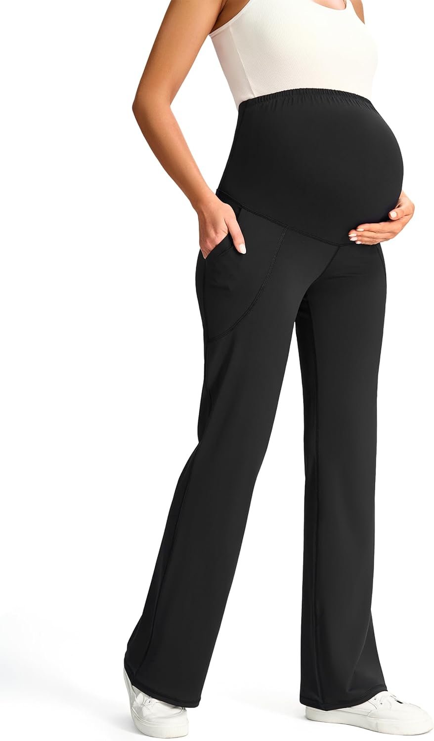 JOYSPELS Smooth Feeling Maternity Bootcut Pants with Pockets Over The Belly Flare Maternity Leggings Pregnancy Yoga Pants