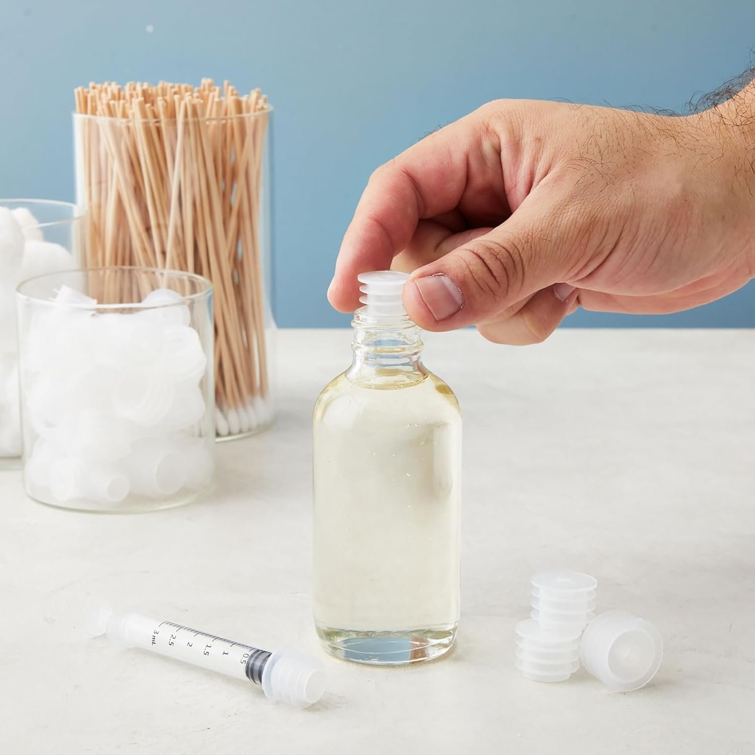 Medicine Bottle Adapter For Syringe: Each clear press-in syringe adapter for medicine bottles is perfect for filling and refilling liquid medication. Ideal for use with a baby medicine, medication dispenser, or liquid medicine dispenser