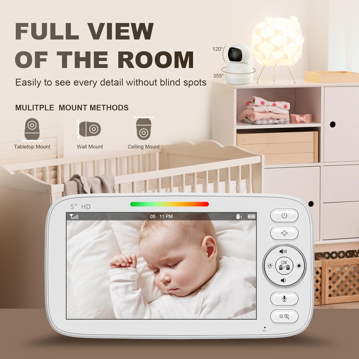 Kidsneed 5″ Split Screen Baby Monitor with 2 HD 720P Cameras and Audio – No WiFi,Long Battery Life, Night Vision, Remote Pan& Tilt& Zoom,Two-Way Talk, Lullabies, Thermal Monitor, 1000ft Range(510FV2)