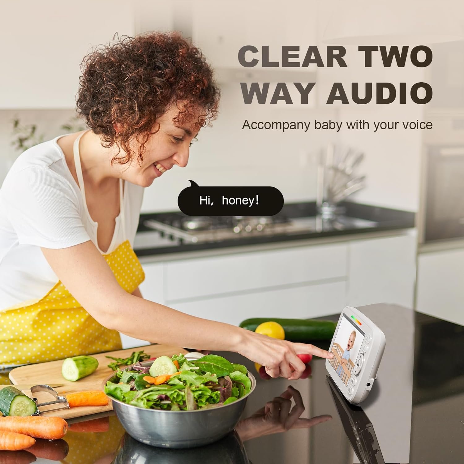 Baby Monitor with Night Vision – Automatic night vision mode with clear greyscale infrared images lets you effortlessly check your baby’s live situation as you stay in bed at dark night. Now, there is nothing stopping you from doting on your child all day and night with our video monitor.With up to 4000mAh big battery, this system lets you monitor your baby throughout the night on a single charge .