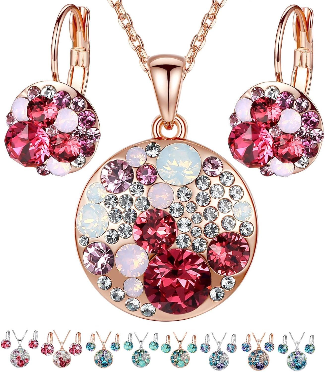 Leafael Ocean Bubble Women’s Crystal Jewelry Set Costume Fashion Pendant Necklace Earring, Silver Tone or 18K Rose Gold Plated, 18″ + 2″, Birthday Gifts for Women