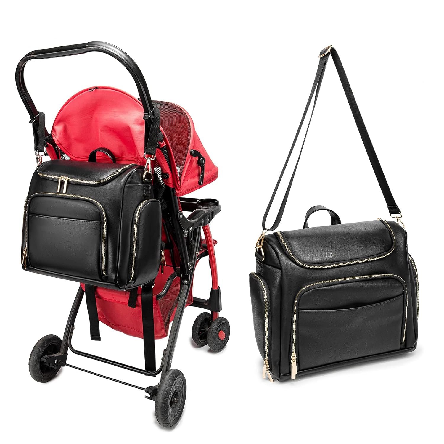 Multi-Use Options & Two Stroller Straps: We provide two Stroller Straps for mom to hang it as leather stroller bag on the stroller, which can free hands and be more relaxed. Our leather backpack diaper bag can be worn as crossbody bag, shoulder bag and hand bag for various ways to satisfy your demands. The adjustable and soft shoulder straps which ensures to reduce fatigue and offer you a comfortable carrying.