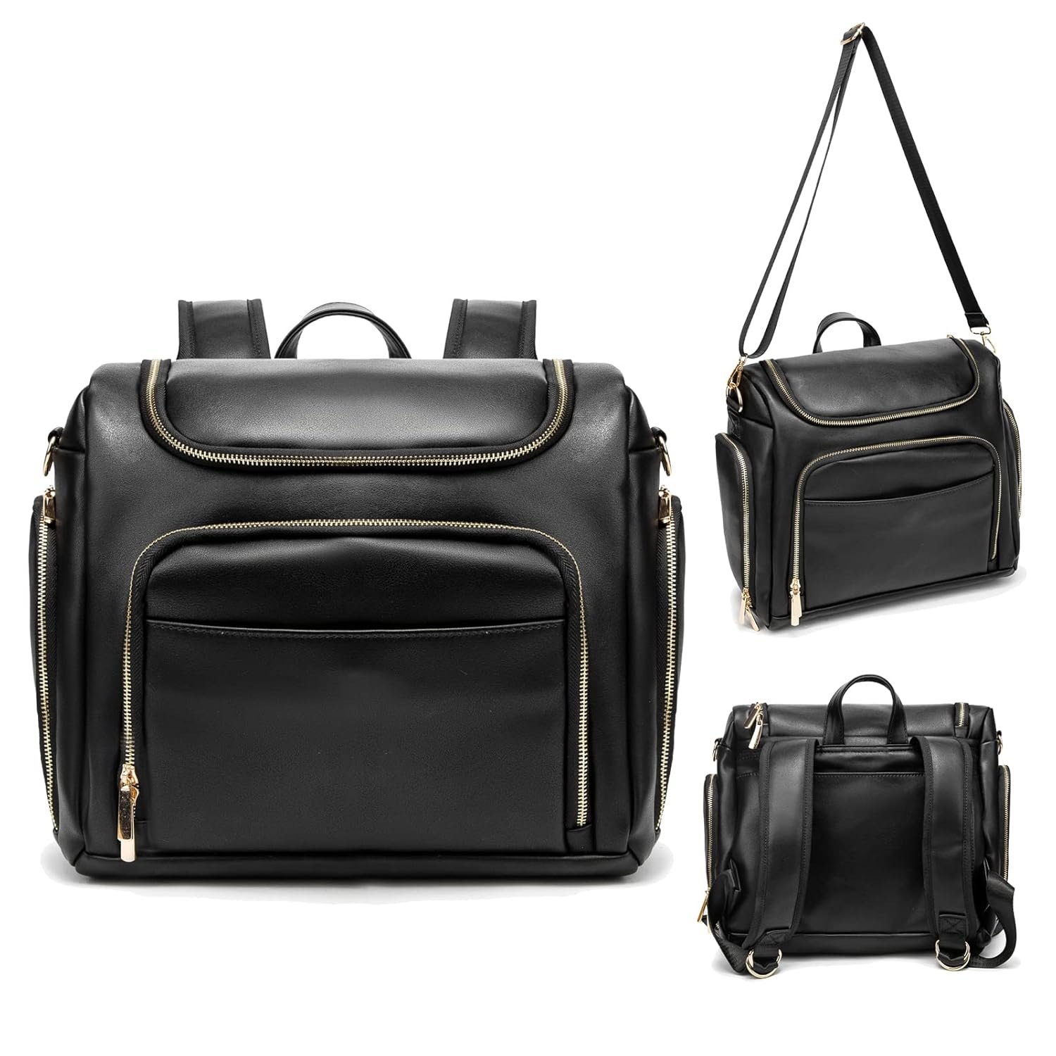 Stylish Yet Practical: This leather diaper bag backpack is desighed with high-quality waterproof vegan leather (durabler than fabric bag, better in deform resistance & tear resistance), long-lasting. You will be enchanted by golden zippers for the first sight. The size of this leather diaper backpack won’t make you feel heavy, it will stay you active.