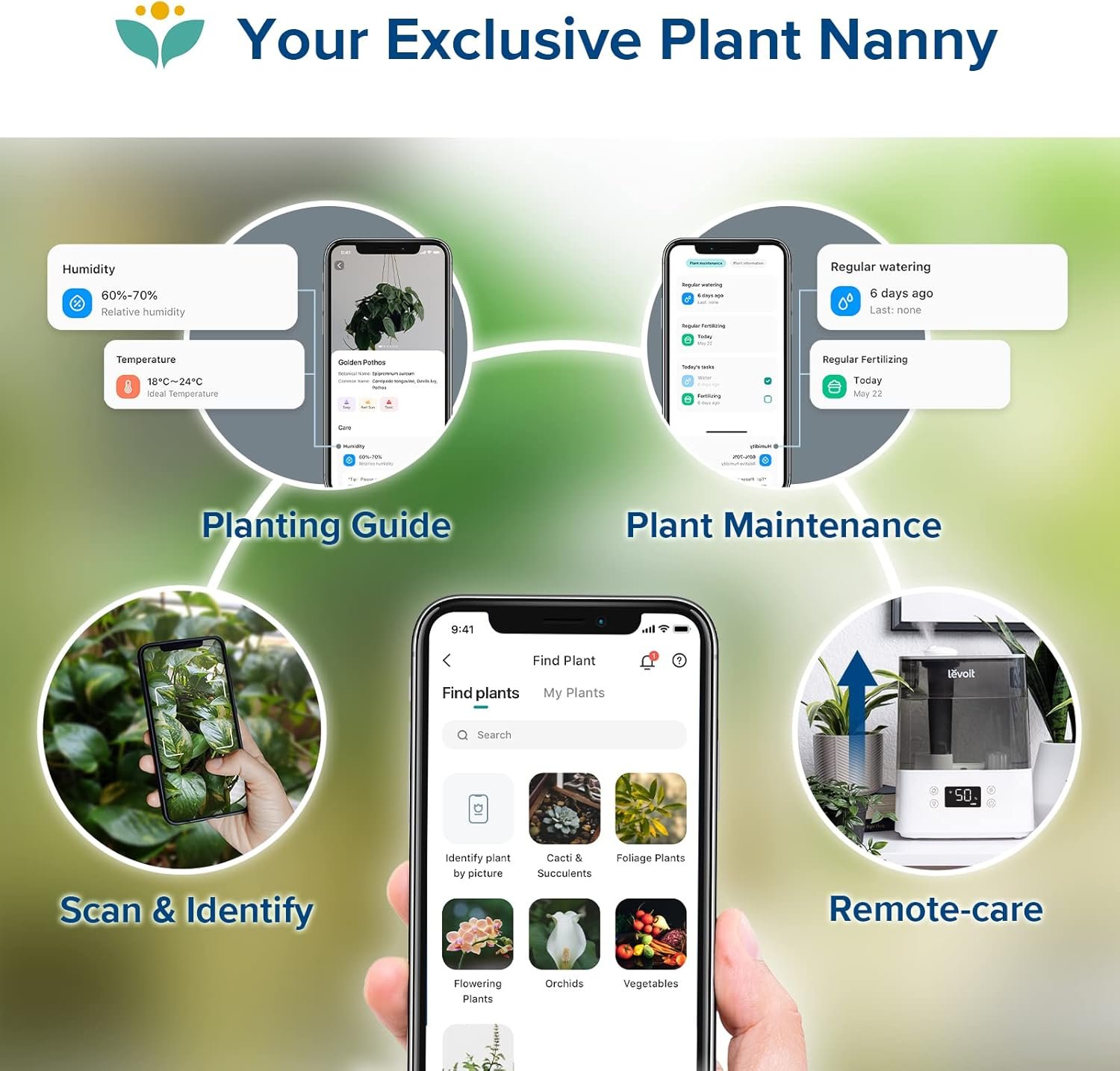 𝘼𝙡𝙡-𝙞𝙣-𝙊𝙣𝙚 𝘼𝙥𝙥 & 𝙑𝙤𝙞𝙘𝙚 𝘾𝙤𝙣𝙩𝙧𝙤𝙡: Use the VeSync app from anywhere to adjust mist output, set timers, and monitor humidity in real time. Connect with Alexa and Google Assistant for seamless voice control