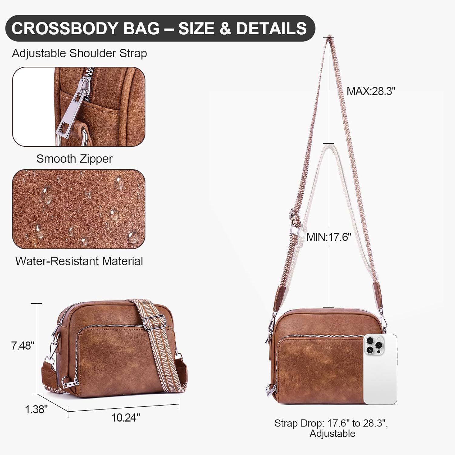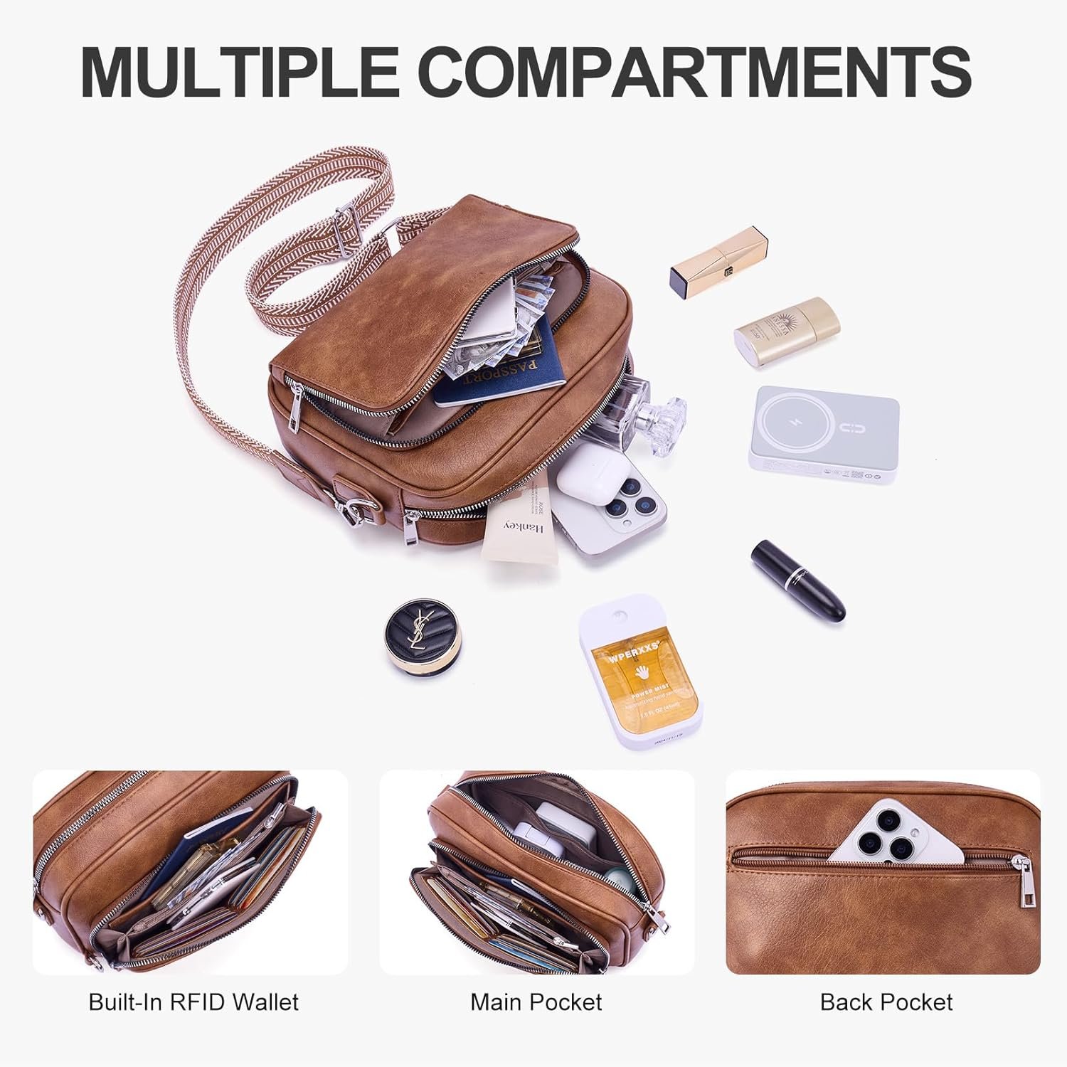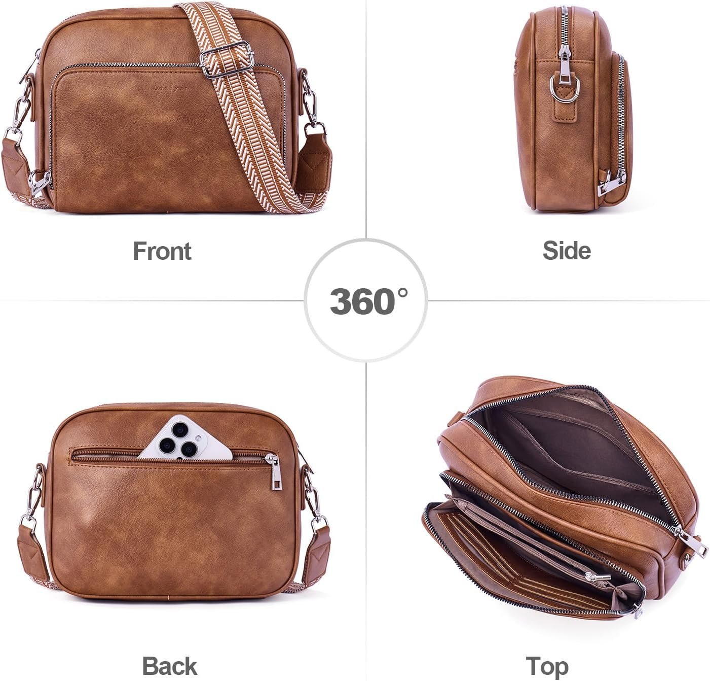 Lexiyat Crossbody Purses for Women Vegan Leather Travel Anti Theft Bags Guitar Strap Shoulder Purse with Built in Wallet