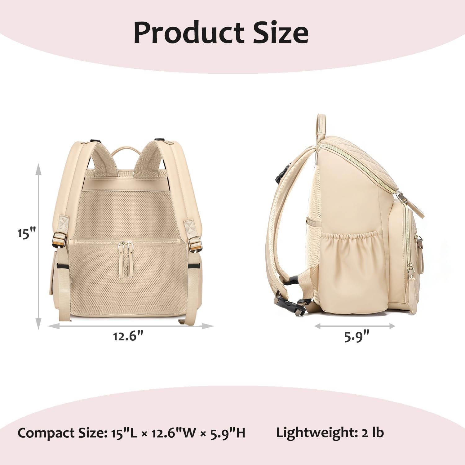 Large Capacity: 5.9″L×12.6″W×15″H, Total 10 pockets, including 2 side pockets for tissue and bottle, an back anti-theft pocket for valuable, an padded pocket for 14” laptop, 2 insulated pockets and 4 slip Pockets. Spacious enough to carry baby essentials such as cloth diapers, medicine, formula, perfect for travel