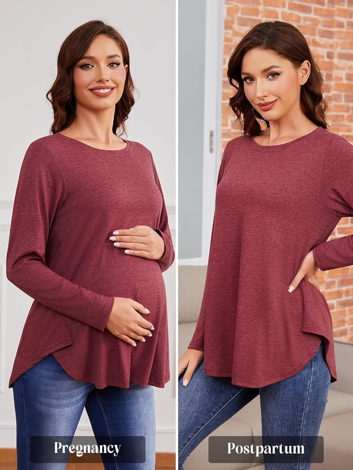 Liu & Qu 3 Packs Womens Maternity Shirts Split Side Long Sleeve Pregnancy Tops Loose Fit Casual Maternity Clothes