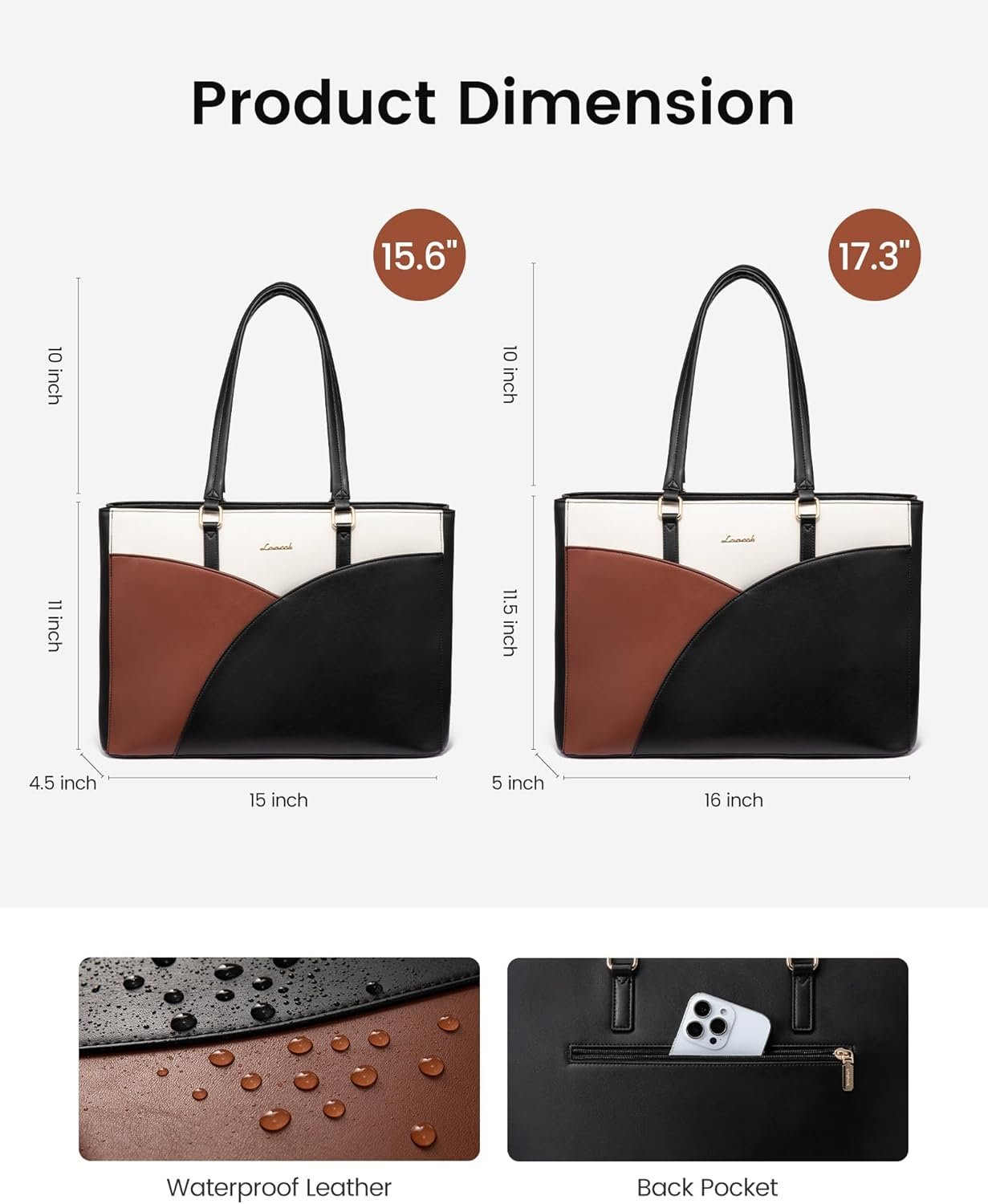 LOVEVOOK Laptop Bag for Women,15.6 Inch Work Teacher Bags Leather Tote Bag Briefcase Waterproof Computer Bag for Women,Black-White-Brown