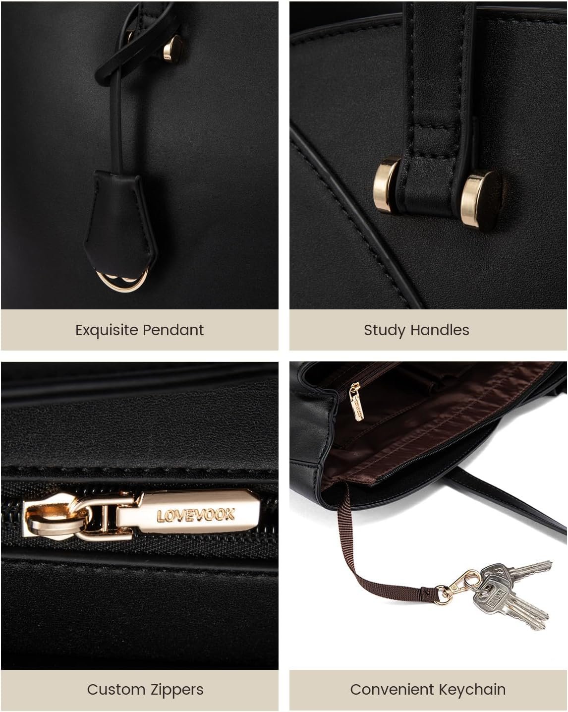 Premium Quality and Durability : Crafted from high-quality waterproof PU leather, the LOVEVOOK laptop bag for women combines elegance with longevity. The reinforced handles and sturdy construction of this leather tote bag for women ensure it can withstand daily use. This work tote bag is a stylish yet practical briefcase alternative, providing a reliable and chic solution for your everyday needs.