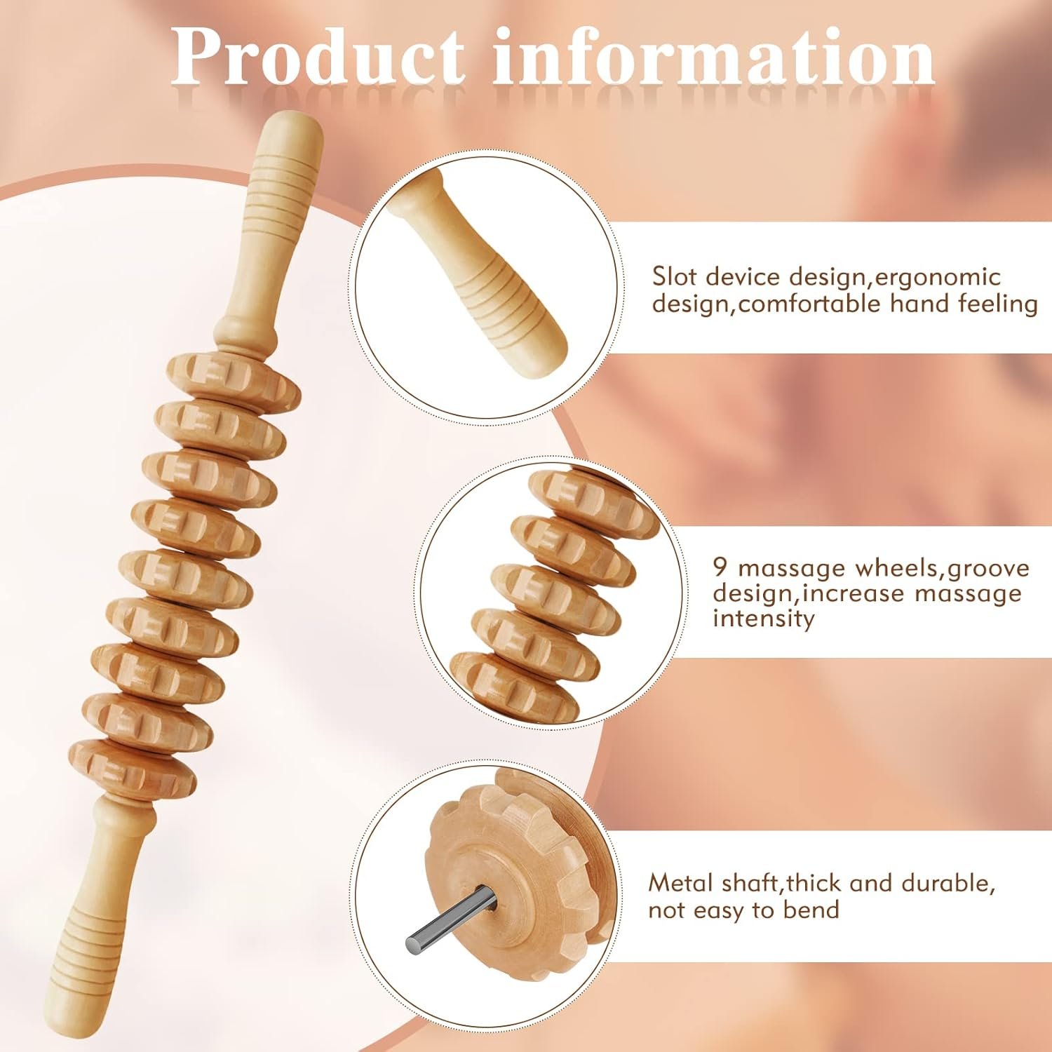 【High Quality Material】Lymphatic drainage massager is made of like natural solid beech wood, no cracks, no burrs, cleverly beveled and polished smoothly, and the curved design matches the body and won’t scratch the skin.The Lots in the middle of the smootherly rolls has high strength, good toughness, and tough .