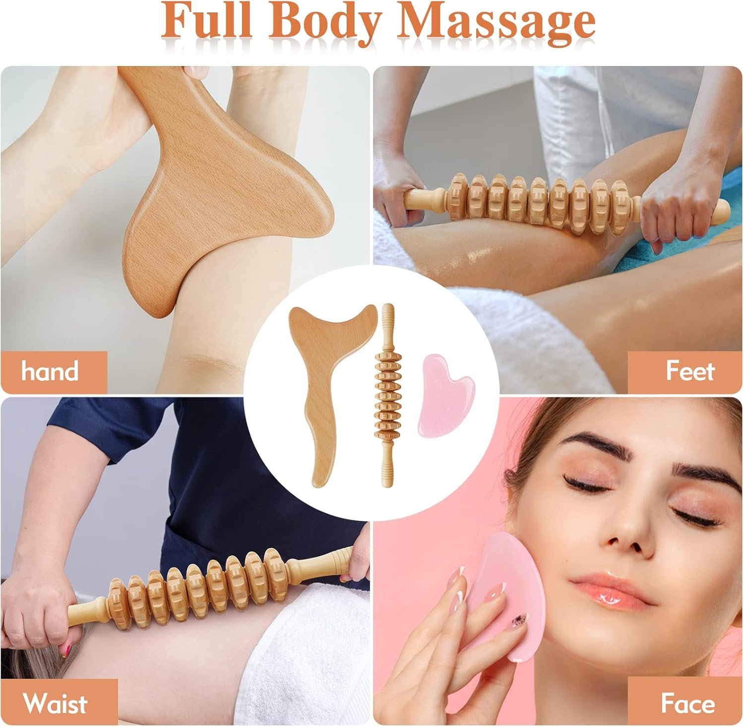 【Full Body Massage Therapy】Wood body sculpting massager kit includes the most effective therapy tools, Ideal for exercising around the face, shoulders, arms, neck, calves, and around large muscle groups such as abdomen, back, thighs, etc. Wood sculpting tools for the body suitable for athletes, coaches, sports players, dancers do the perfect warm-up.