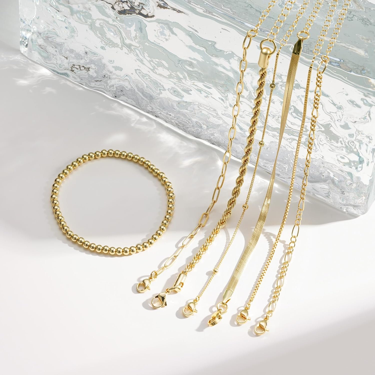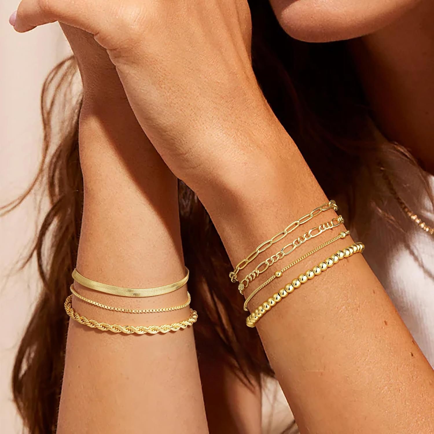 M MOOHAM Gold Bracelets for Women – 14K Real Gold Plated Beaded Bracelets Set Rope Paperclip Chain Stackable Bracelet Non Tarnish, Friendship Birthday Jewelry Gifts for Women Teen