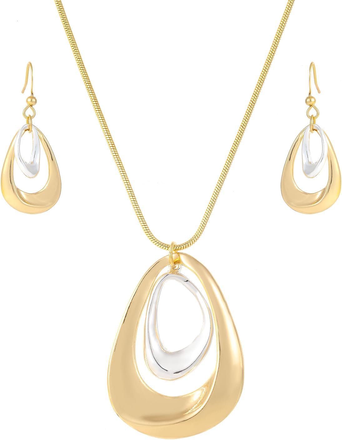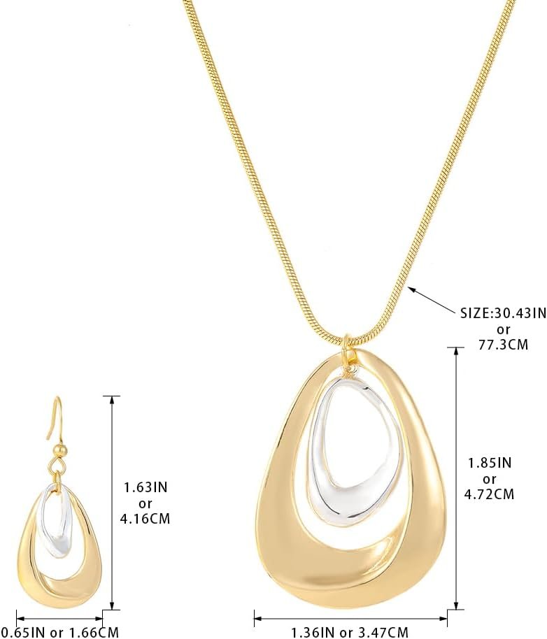 Madison Tyler Gold Plated Jewelry Set for Women | Silver Teardrop Pendant Necklace Trendy | Long Necklace with Snake Chain | Fashion Dangle Earring Set