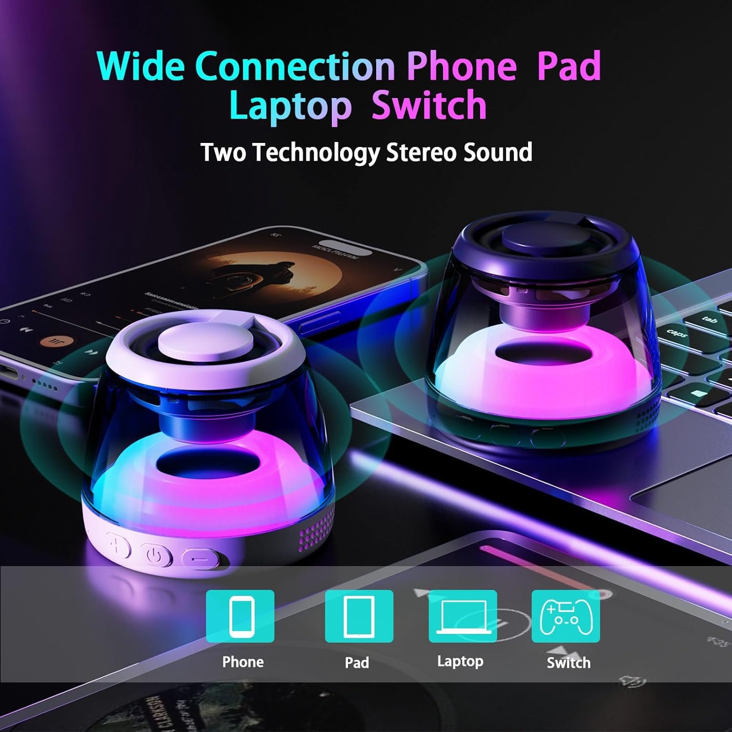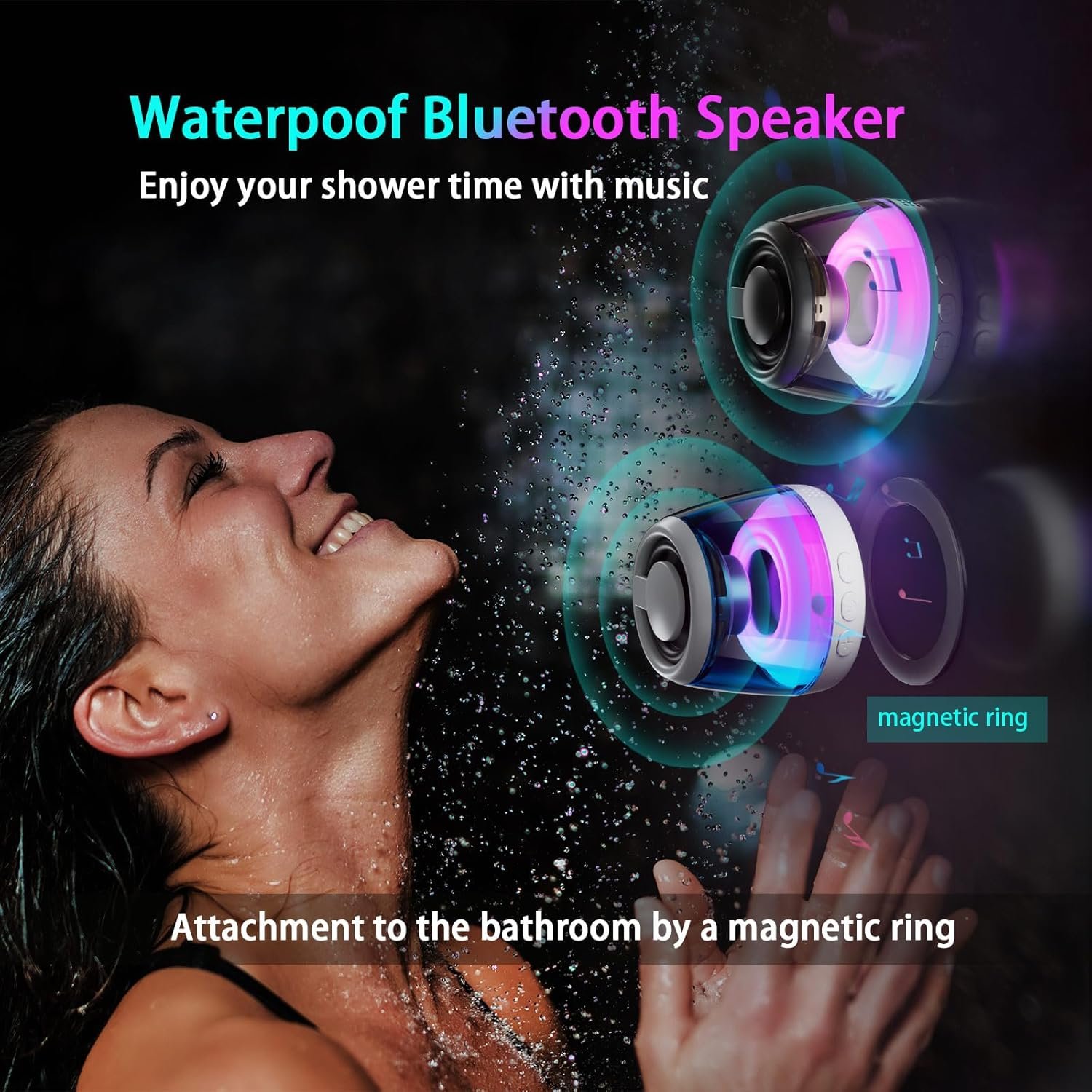 RGB LIGHT SHOW & ULTRA PORTABLE: Magnetic Wireless Bluetooth speaker with different light modes. Cool light effects can jump and change with the beat of the music. It also elevates your evening gaming experience, with changing lights that complement the colorful setup of your gaming room or PC case. Like an elf in the night to add to the ambiance of your party. Its compact design makes it easy to carry, it is perfect for outdoor, hiking, beach, dorm room, kitchen, bathroom, boat, golf car and more.