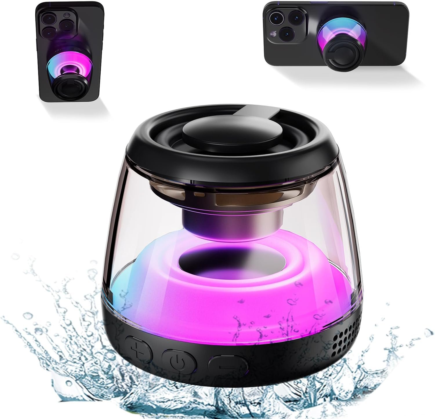 Magnetic Bluetooth Speaker,Wireless Induction Bluetooth Speaker,Mini Portable Cell Phone Stand for iPhone, Lanyard & RGB Night Light,or Home,Outdoors,Pool,Gift (Black-1PCS)