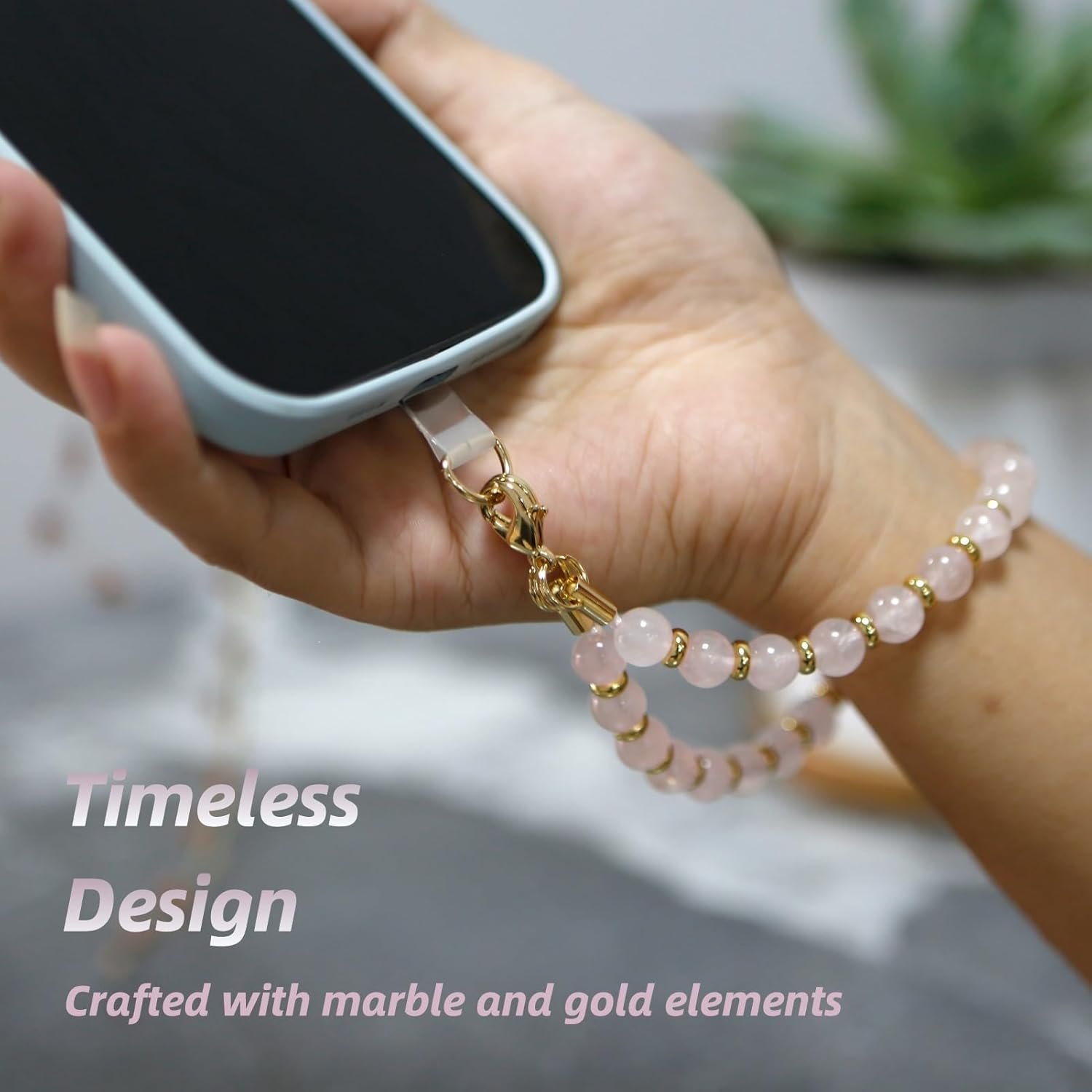 Marble Beaded Phone Wrist Strap,Detachable Phone Bracelet Strap with Tether Tab,Hands-Free Wristlet Strap (Rose Quartz)