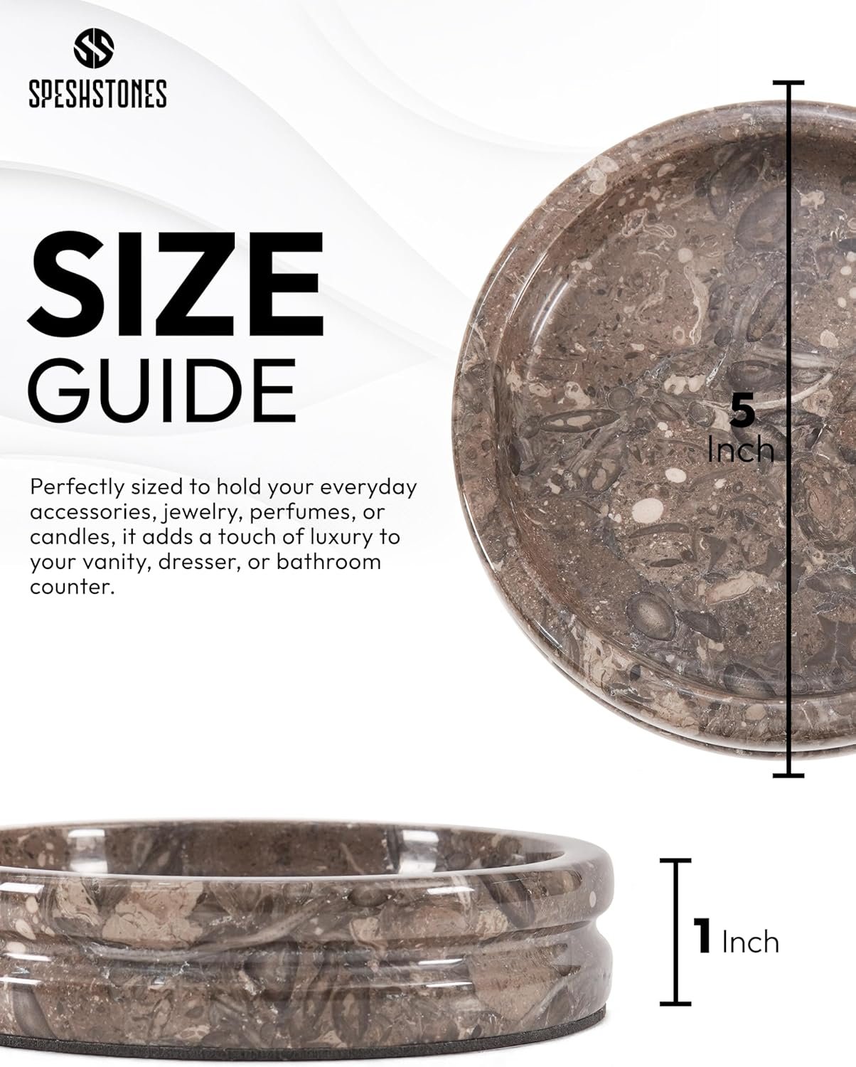 USAGE – Unique Gifts for Women. Organize rings, earrings, bracelets, and perfume in this natural stone trinket tray. Perfect for vanity accessories, dresser tops, or bathroom counters. Just Wipe with a damp cloth and it will be as shiny as new again.