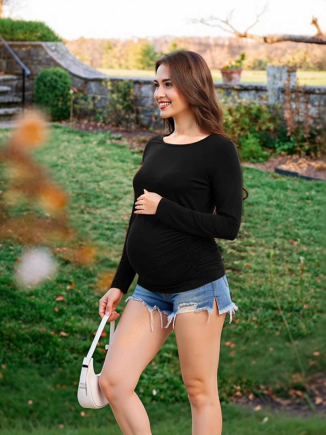 Maternity Shirts Long Sleeve Pregnancy Top for Women with Crew Neck Casual Tee Shirts