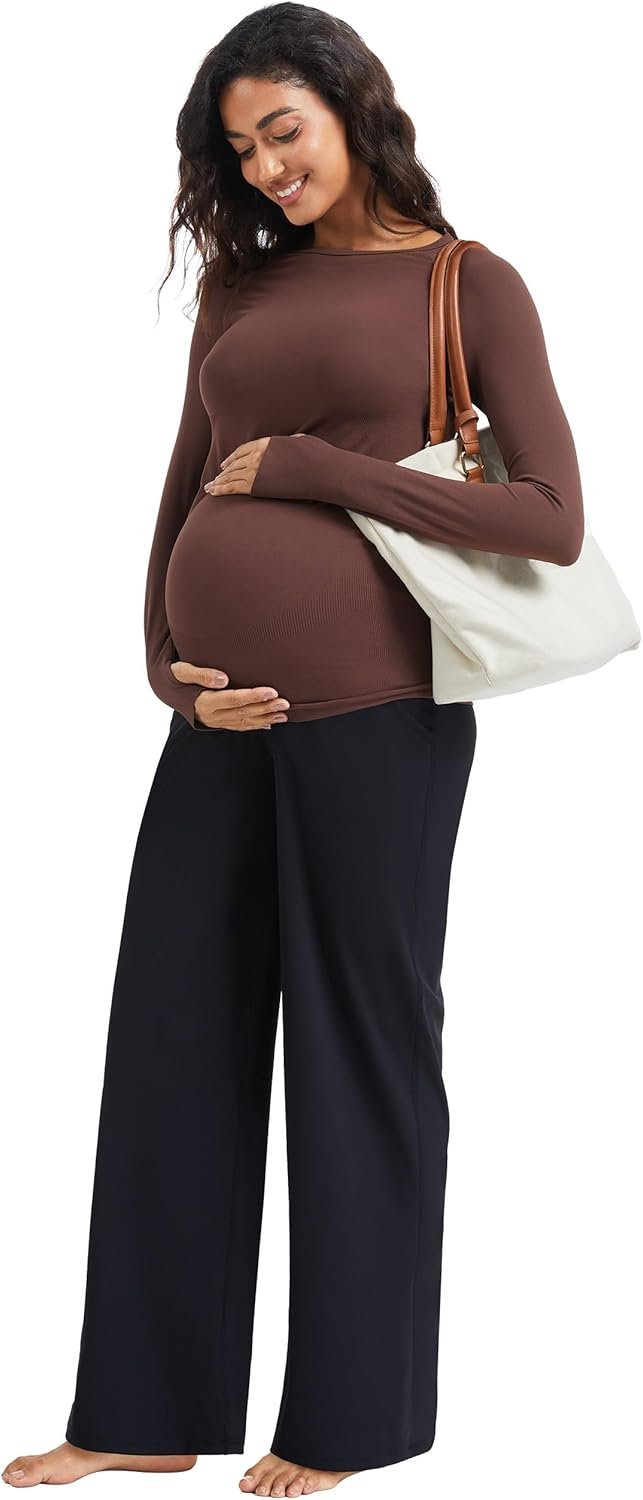 MathCat Womens Maternity Pants Over The Belly Wide Leg Yoga Work Dress Pants Pregnancy Pants Lounge Trousers Stretchy Soft