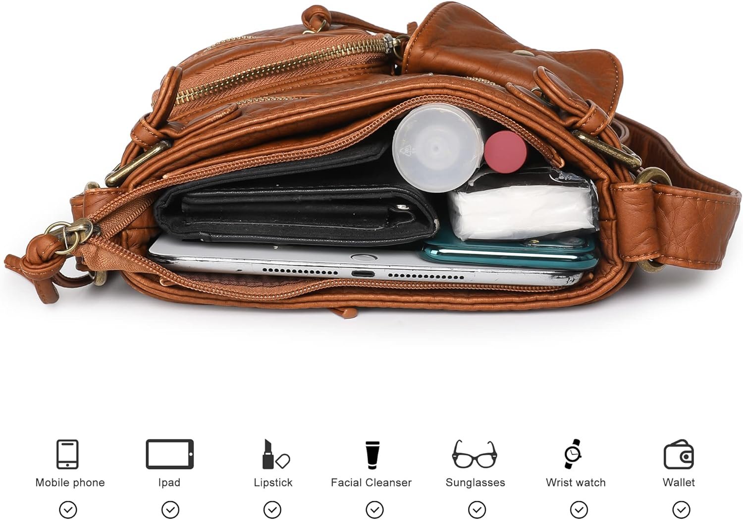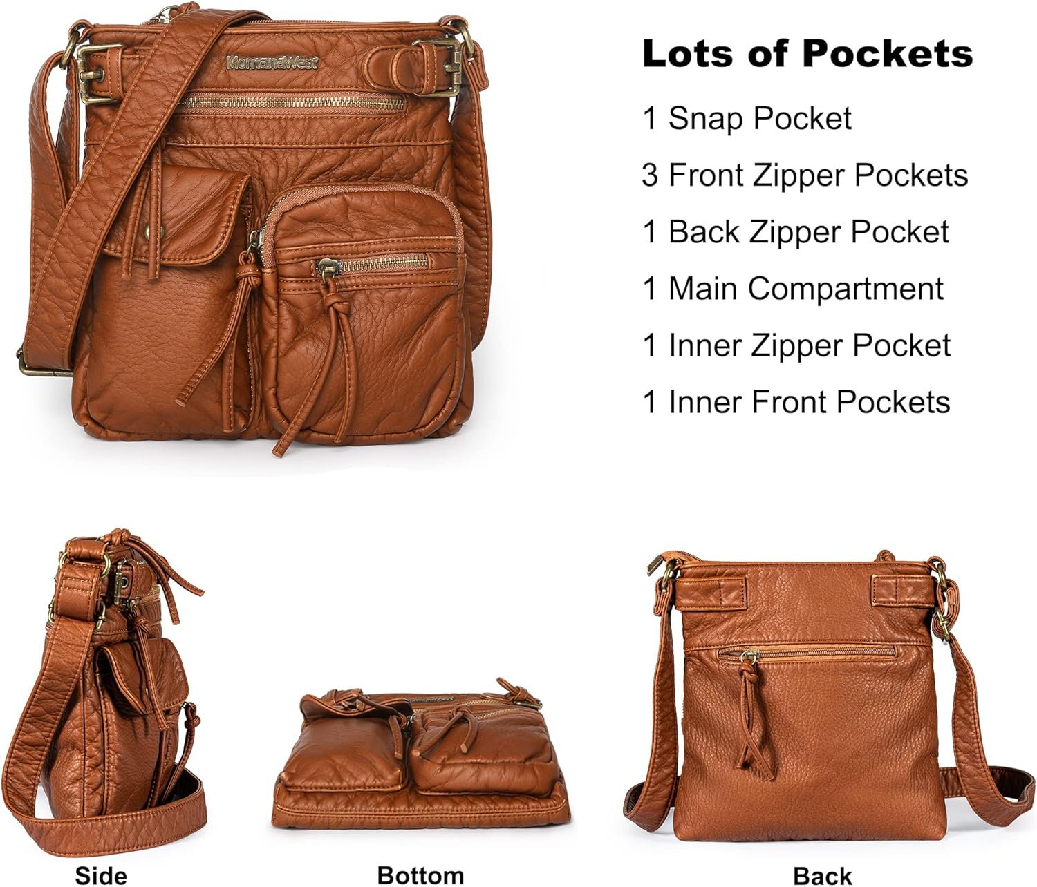 Montana West Crossbody Bag for Women Soft Washed Leather Multi Pocket crossbody handbags
