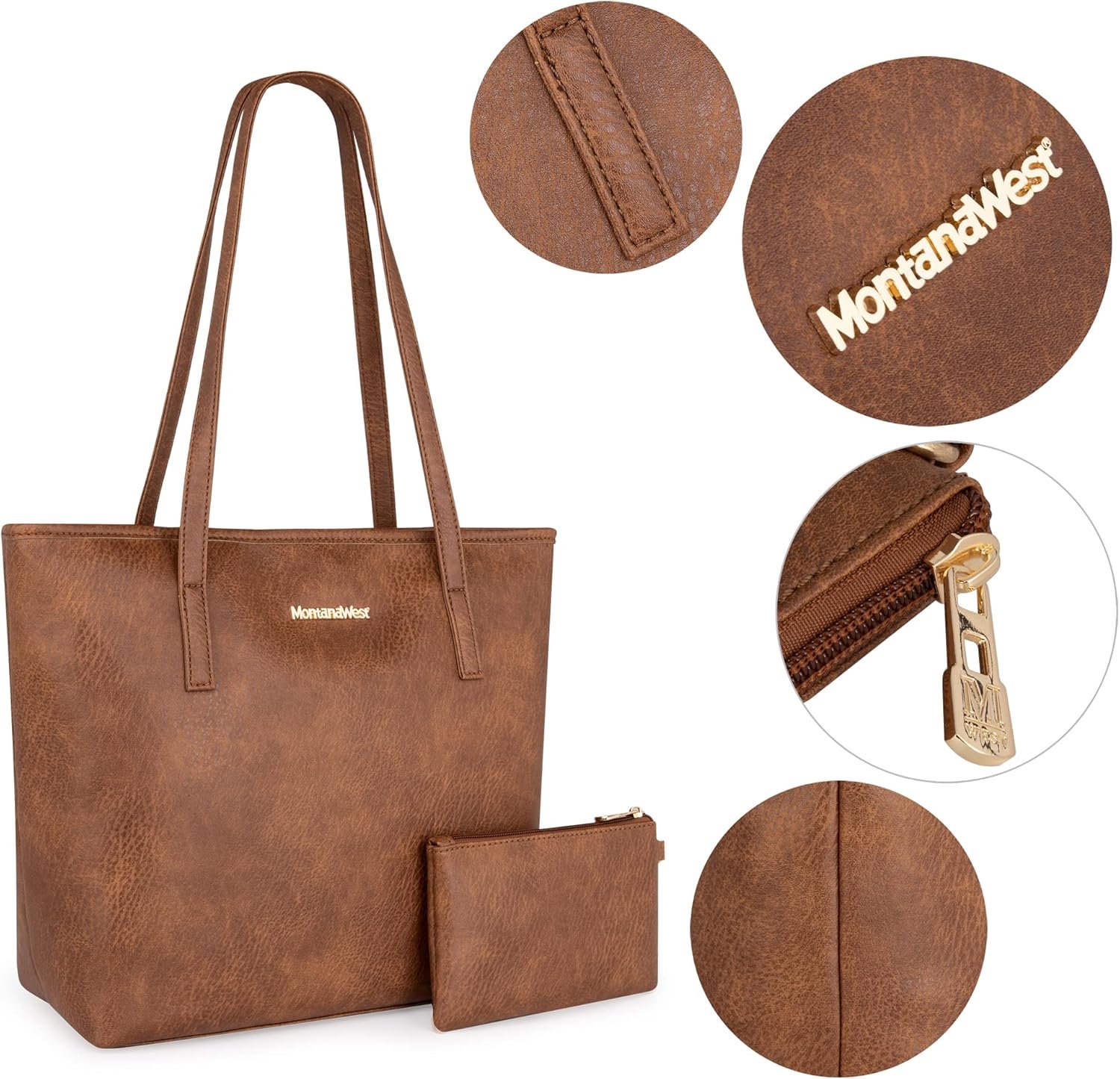 Montana West Tote Bags Vegan Leather Purses and Handbags for Women Top Handle Ladies Shoulder Bags