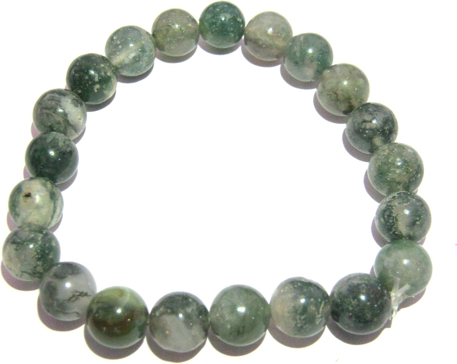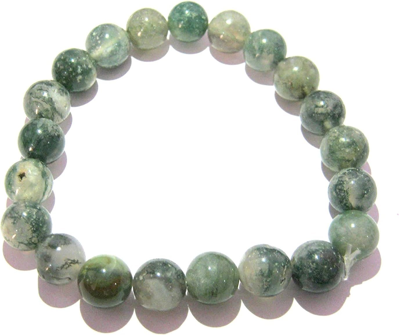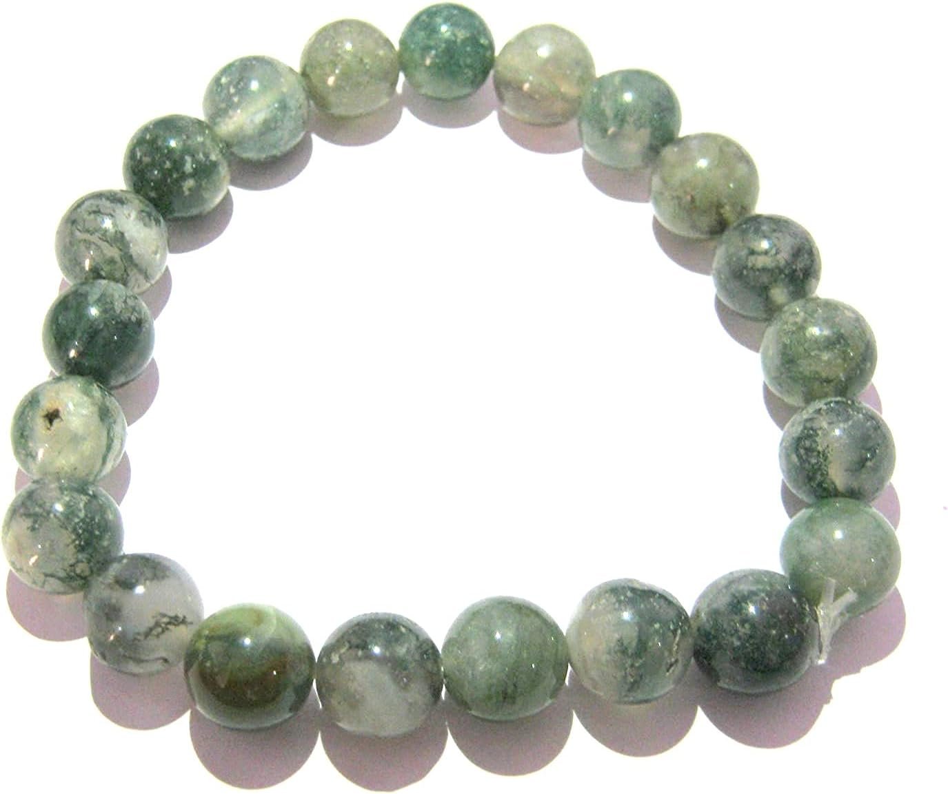 BEAUTIFUL 8 MM MOSS AGAT BRACELET FOR POSITIVE ENERGY SPECIFICATION NATURAL STONE : MOSS AGATE BEAD SIZE : 7 MM APPROX EACH LENGTH : 7 INCHES APPROX We at CRYSTAL MIRACLE welcome You to our extensive range of natural crystal items. Crystal Miracle is one of the trusted name engaged in offering best range of quality and variety of healing crystal products which includes Natural Crystal Pendants, Chakra Sets, Worry stones, Tumbled Stones, Runes, FengShui, Ba Gua Crystals, Reiki Generators, Wands, Gems, Jewelry, Pyramids, Bracelets, Rocks, Clusters, Fossils, Merkaba Stars, Pendulums & More.
